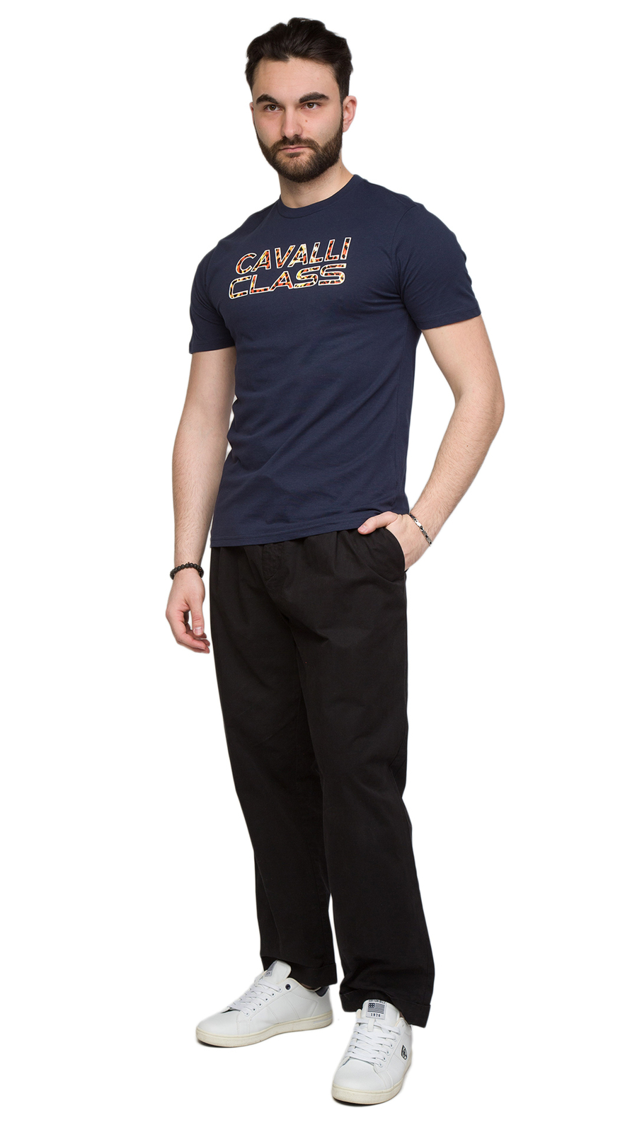 как выглядит Cavalli Class Navy Logo Animal Print Fashion T-Shirt- фото