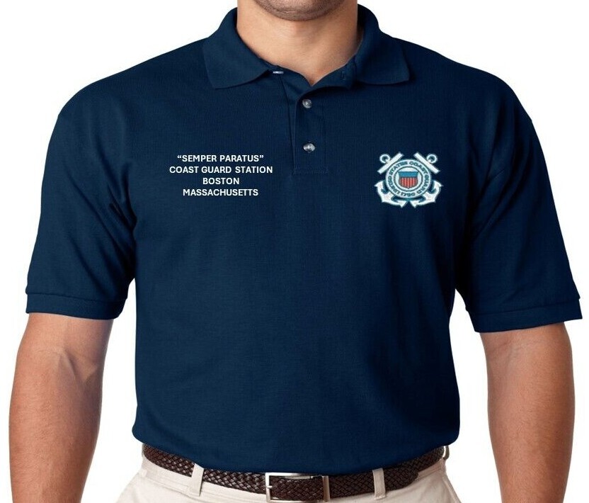 COAST GUARD STATION JOINT BASE CAPE COD MA POLO EMBROIDERED.OFFICIALLY LICENSED