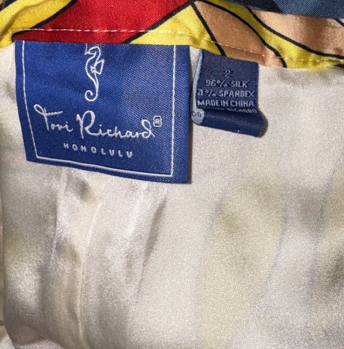 как выглядит TORI RICHARD Honolulu Abstract Wild Leg Silk Relax Pants Women Sz 2 Lined Cruise фото