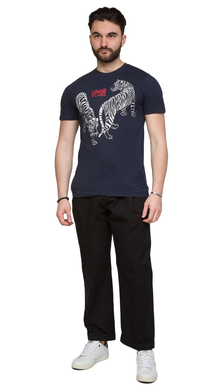 как выглядит Cavalli Class Double Tiger Logo Motif Fashion T-Shirt- фото
