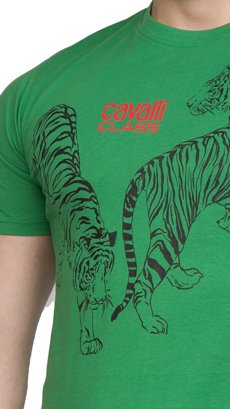 как выглядит Cavalli Class Double Tiger Logo Motif Fashion T-Shirt- фото
