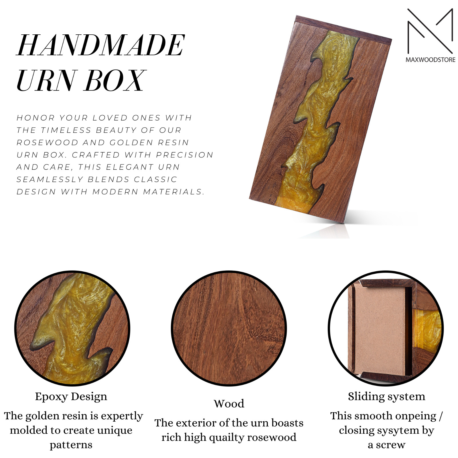 Wooden Urn Box-Urn Box-Rosewood and Golden Resin Design Urn Box For Human Ashes