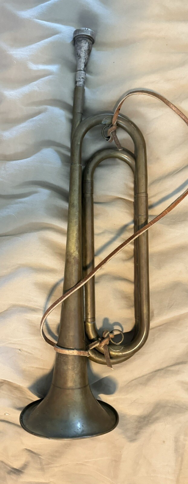 как выглядит Antique Military US Regulation Stamped Brass Bugle Made In USA With Mouthpiece фото