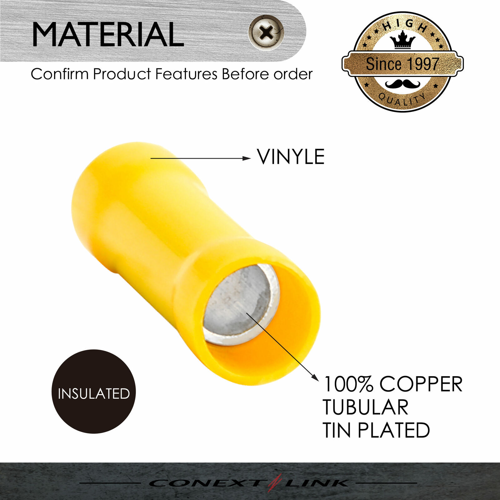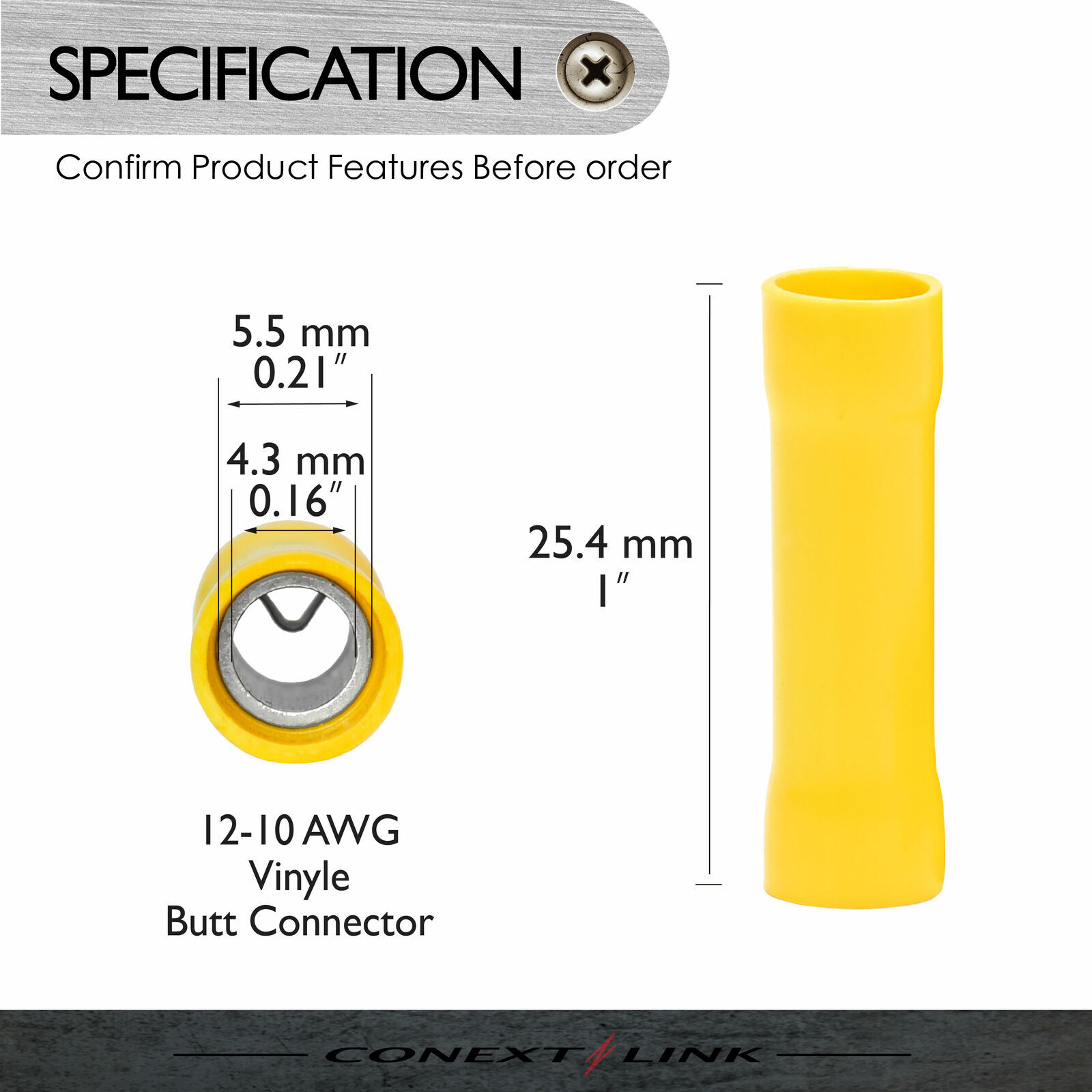 50PCS 12-10 AWG Yellow Wire Butt Crimp Connectors Insulate Vinyl Terminals