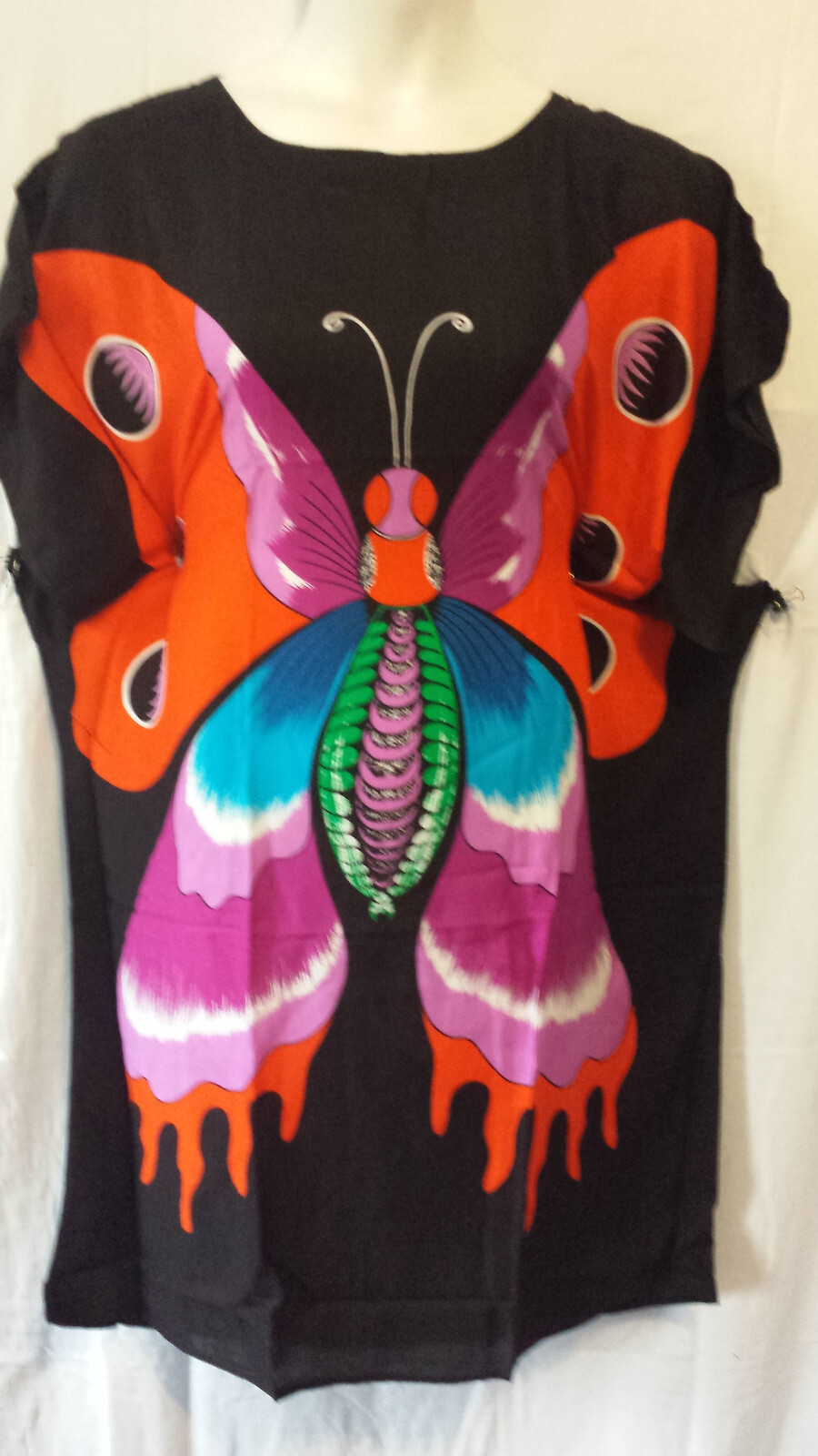 Women Ponchow Top Kaftan Dress Black Orange 100 Rayon Free Size 52 around