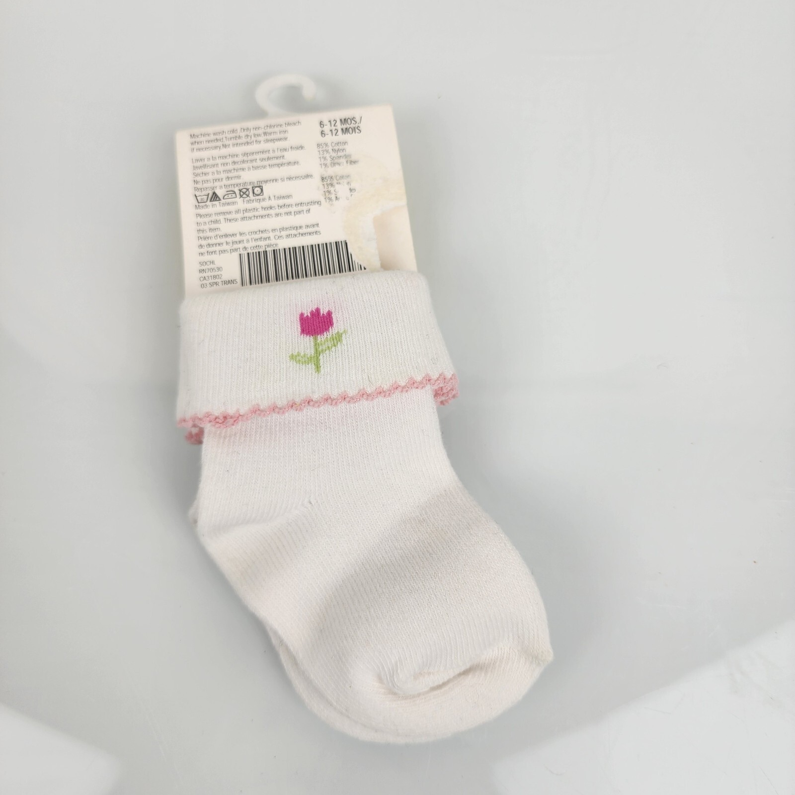 Vintage 2003 gymboree Tip Toe Tulip Layette White Pink Flower Socks 6-12 M NWT