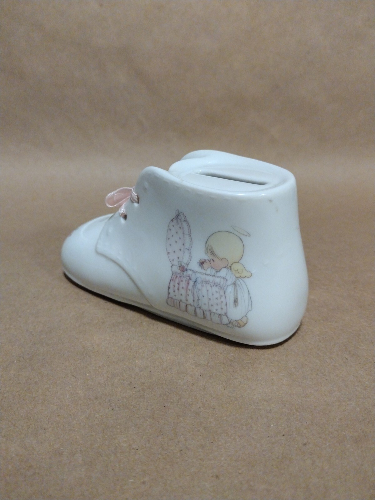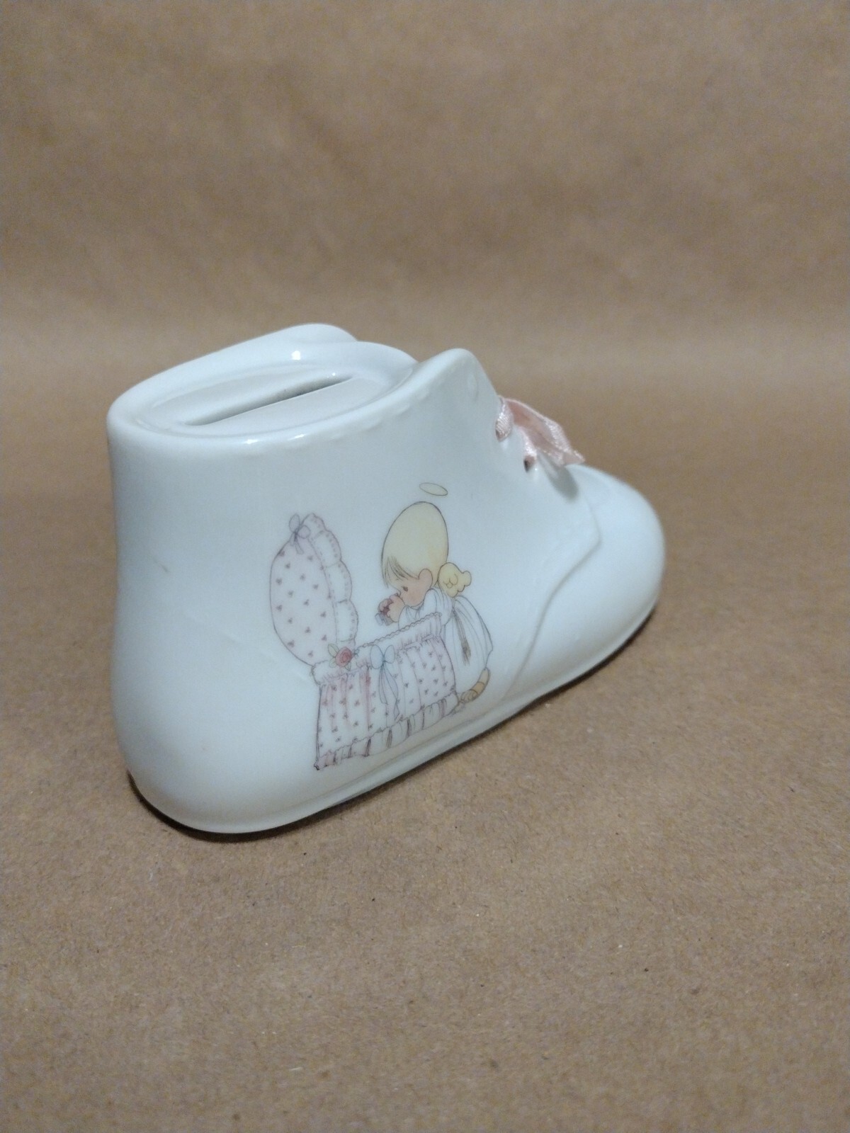 как выглядит Enesco Precious Moments "Heaven Bless You" Baby Girl Shoe Bank 1990 фото