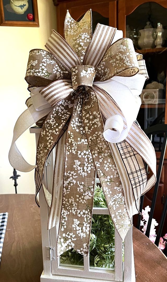как выглядит 10 " NEUTRAL FARMHOUSE FLORAL BOW WIRED for DOOR WREATH LANTERN POST 211 C rb фото