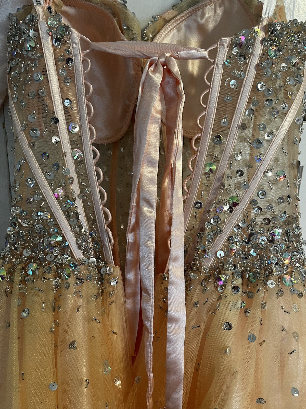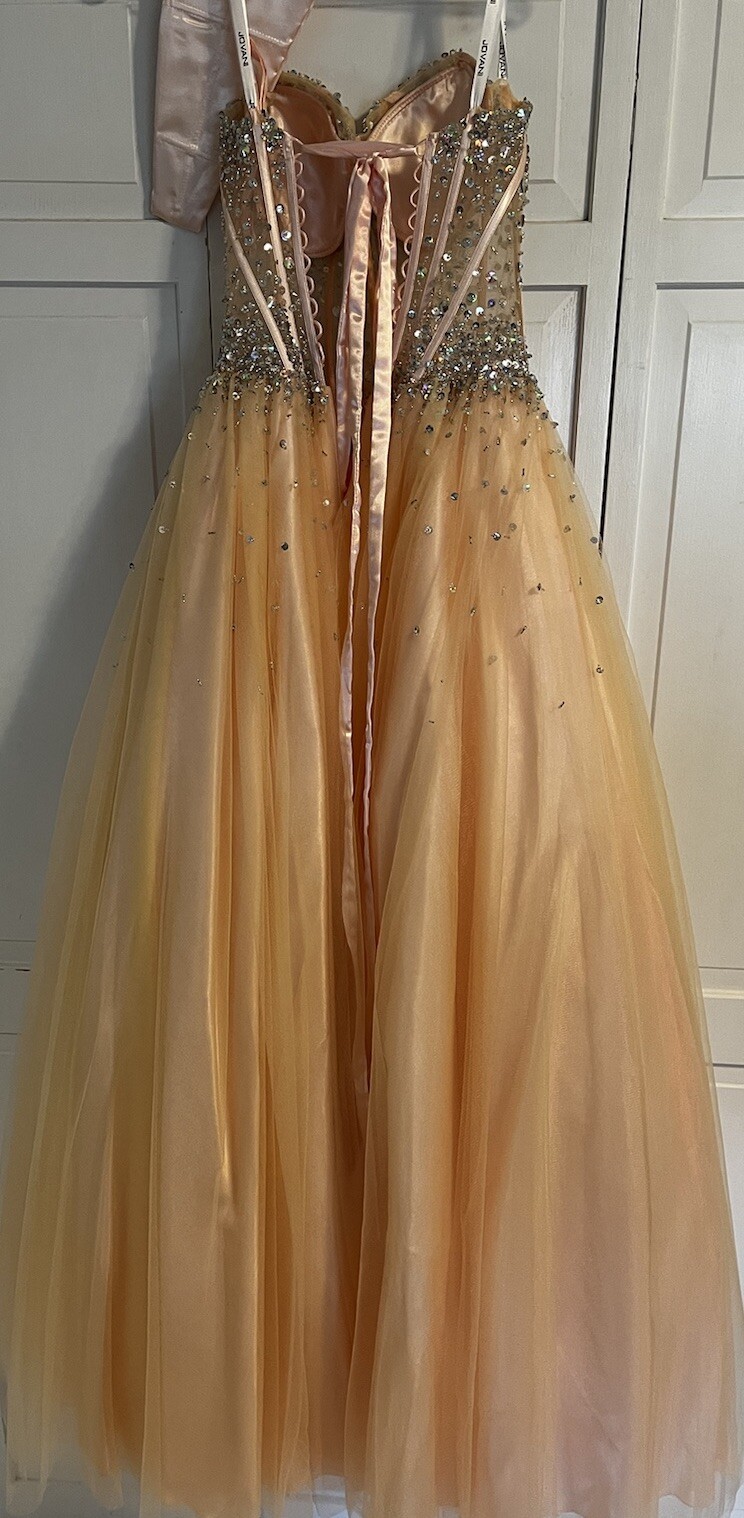 как выглядит Jovani Peach Pink Silver Sequin Tulle Skirt Gown Sheer Midriff NEW Size 4 фото