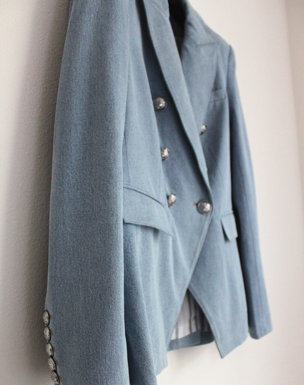 как выглядит NEW Veronica Beard Miller Dickey Double-breasted Denim Jacket, Size 0, 2 фото