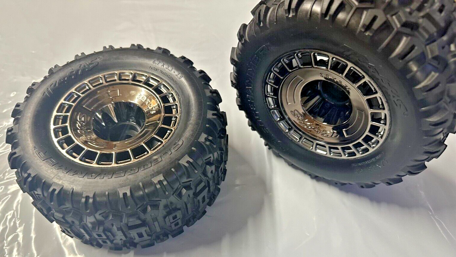 Traxxas OPEN BOX 9572T Tires wheels, glued 3.8 black chrome wheels K180