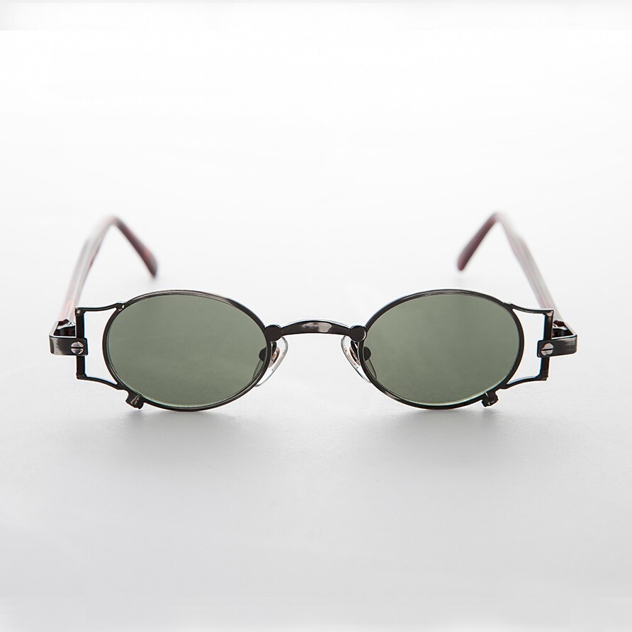 Gothic Oval Victorian Steampunk Sunglass Gunmetal / Green Lens - Ada