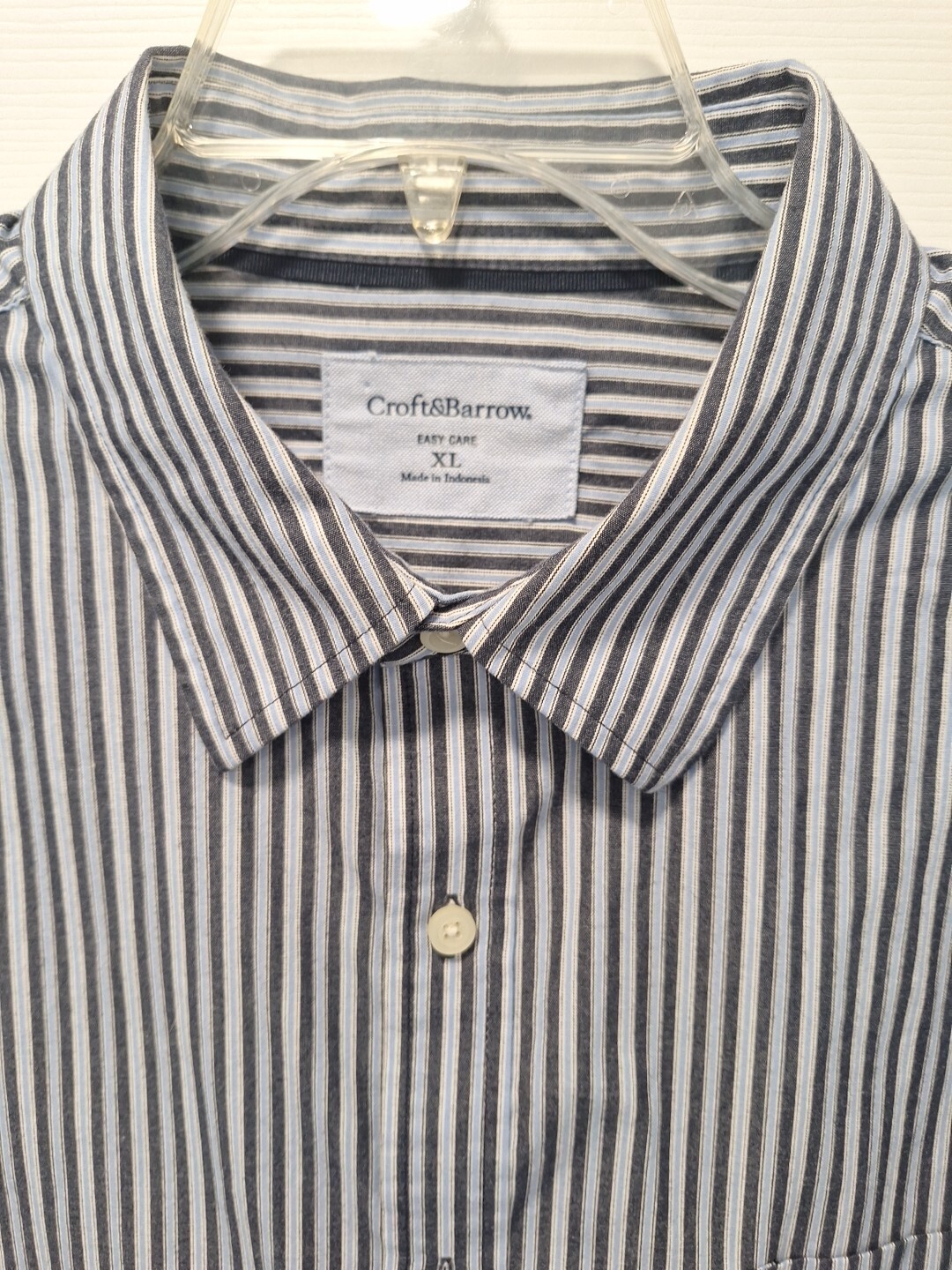 как выглядит Mens XXL Long Sleeve Dress Shirt Flip Cuffs Blue Stripes Croft Barrow Pocket фото