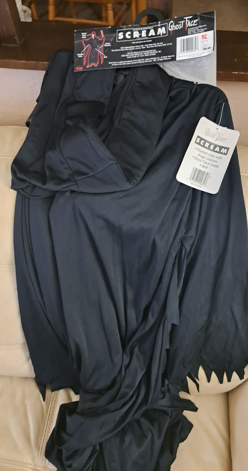 как выглядит VINTAGE SCREAM GHOST FACE COSTUME/1997/RARE/ADULT/UP TO 200LB/NEW/HALLOWEEN фото