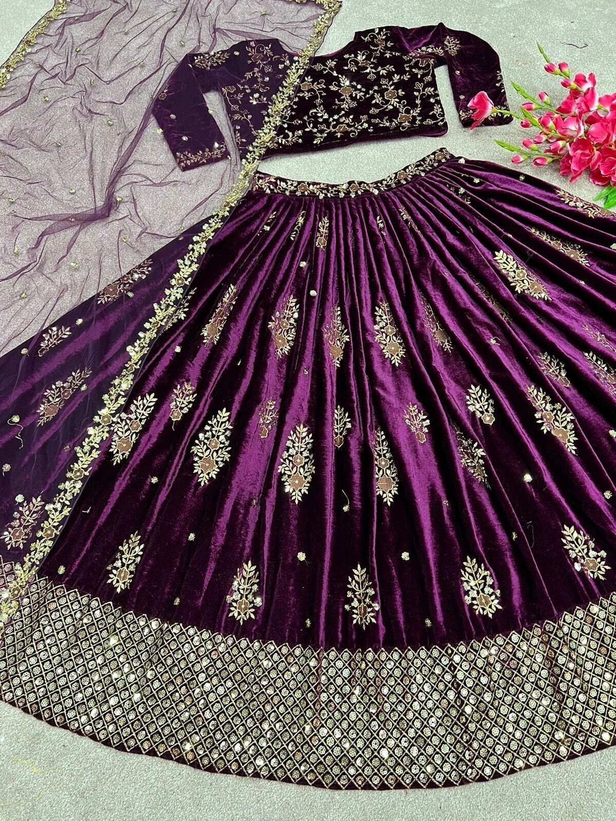 Llatest Launch Viscose Velvet Fancy Lehenga Choli With Dupatta For Wedding Wear