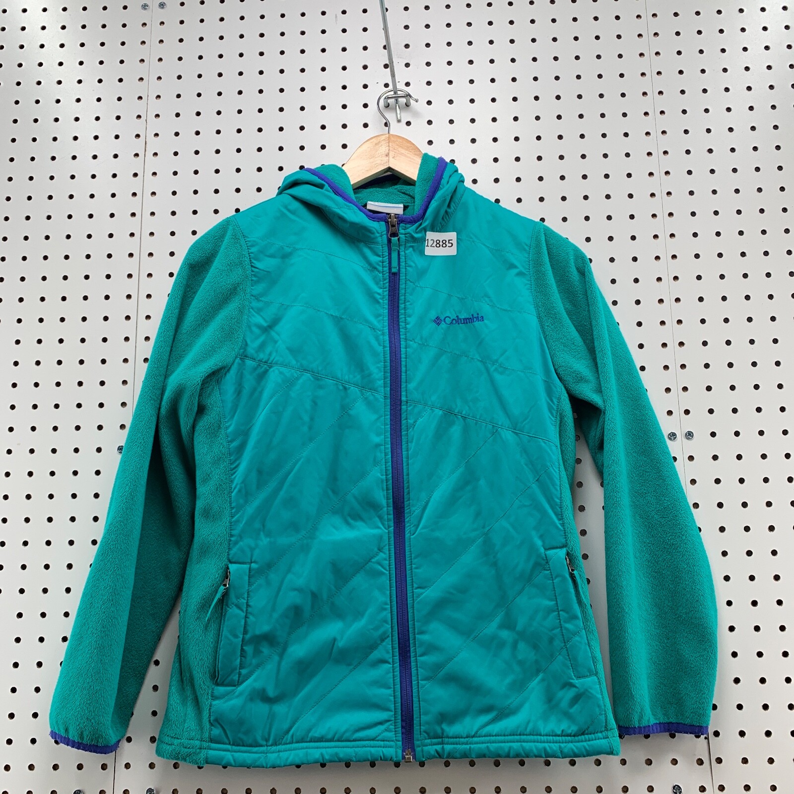 Girls Columbia Long Sleeve Full Zip Soft Shell Green Fleece Jacket Size L 14-16