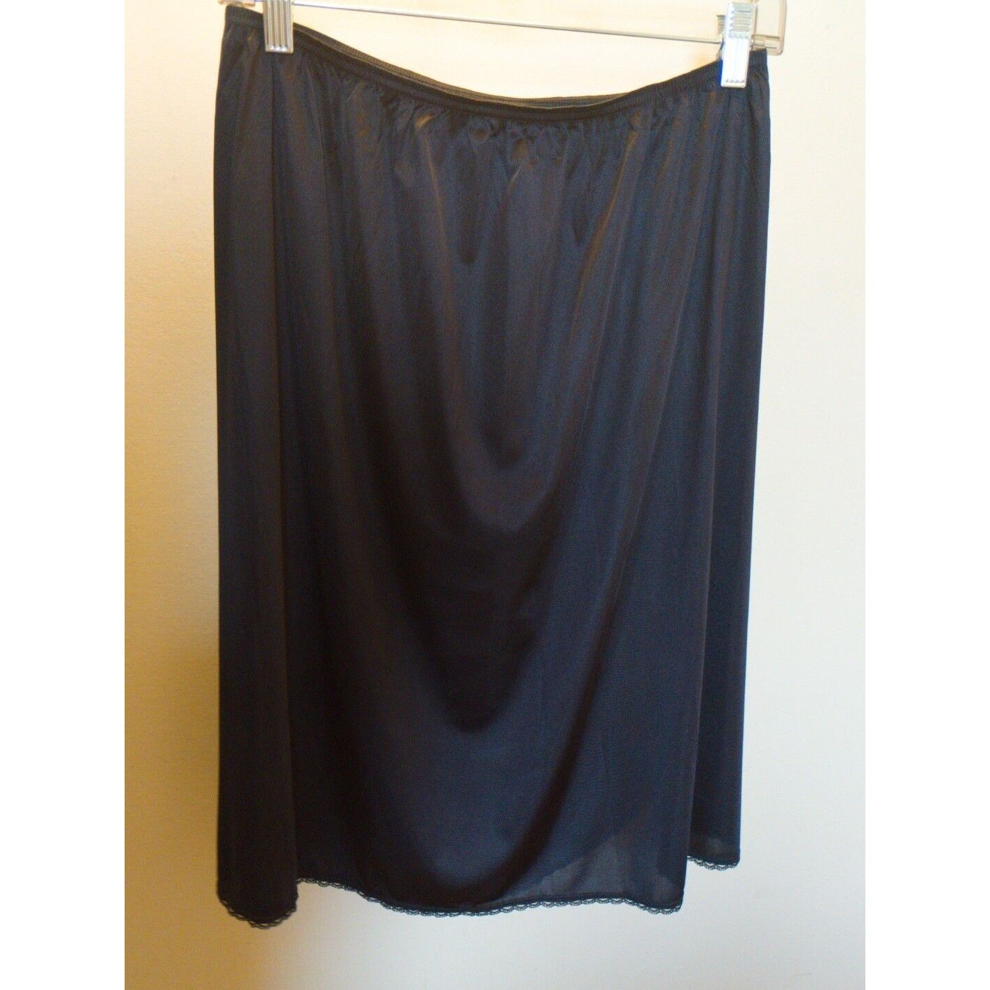 как выглядит Vassarette 3057 XL Black Half Slip Side Slit Silky Nylon Lace Hem Lingerie фото