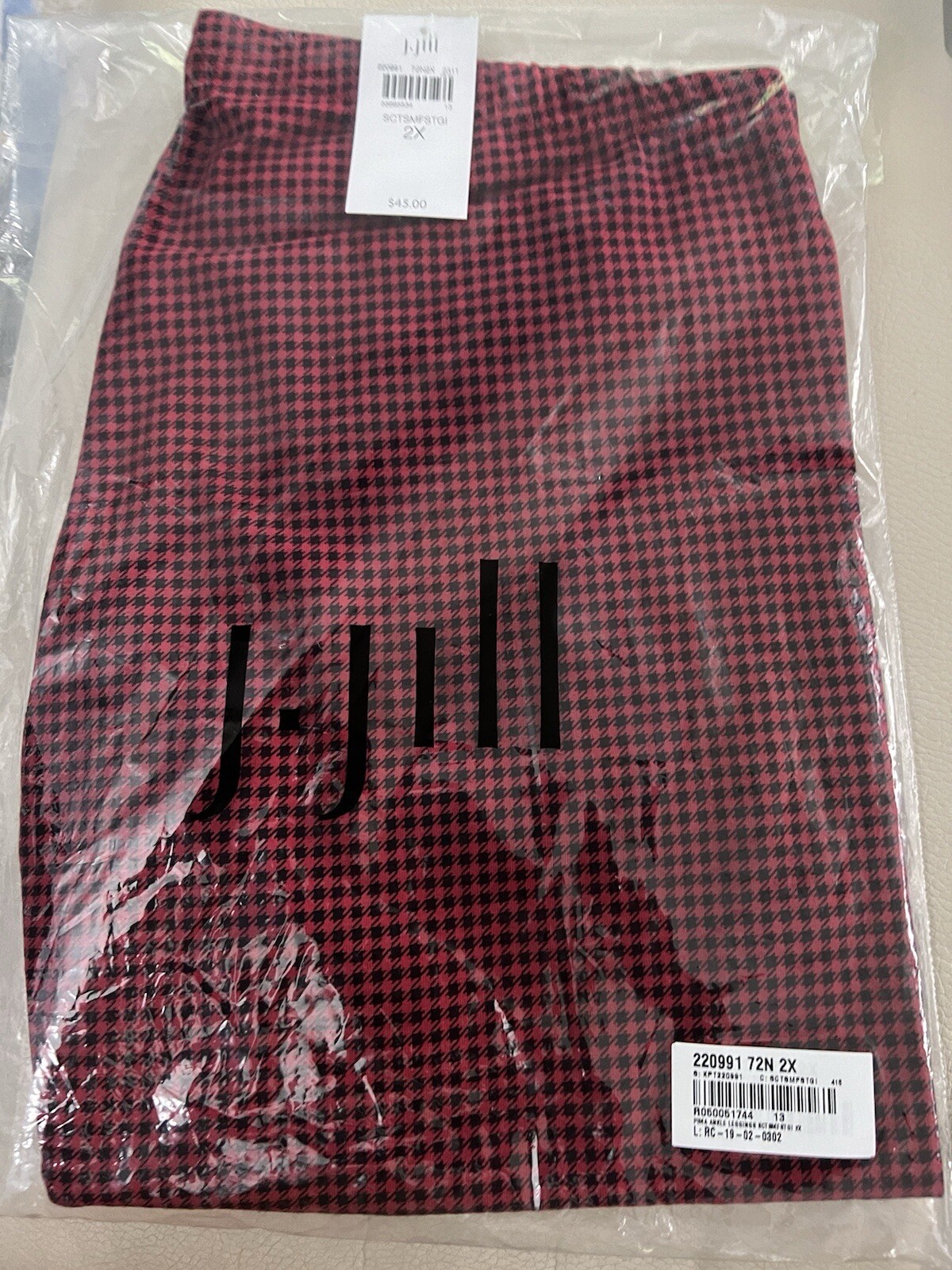как выглядит NEW J.Jill Perfect Pima Ankle-Length Leggings - Scarlet Gingham Size 2X фото