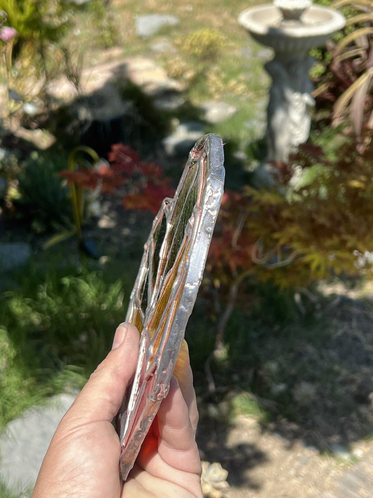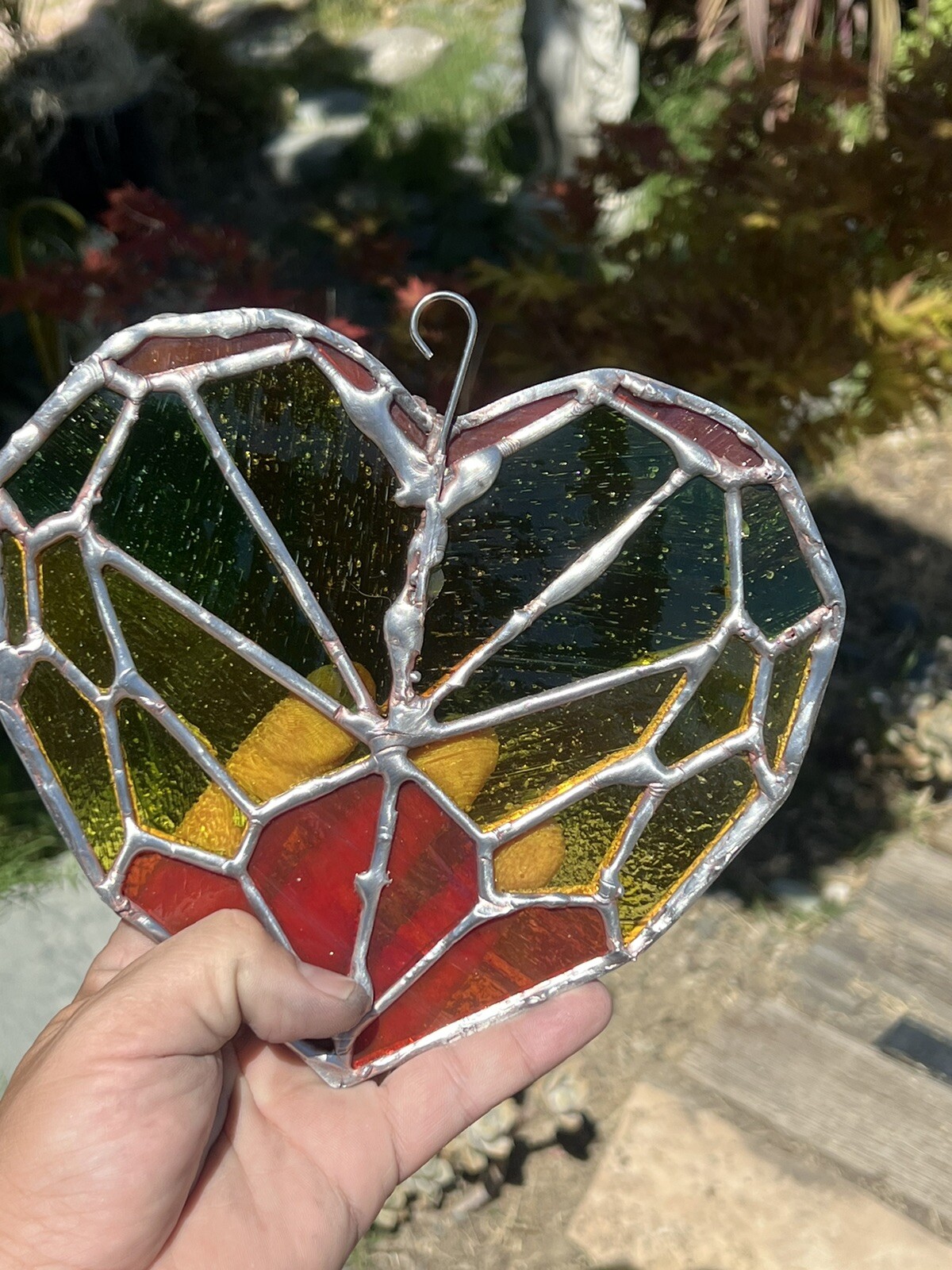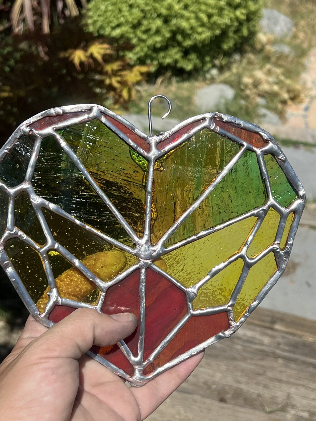 Handmade Stained glass Red Yellow Green Heart Sun catcher 8x7 Inch Approx,