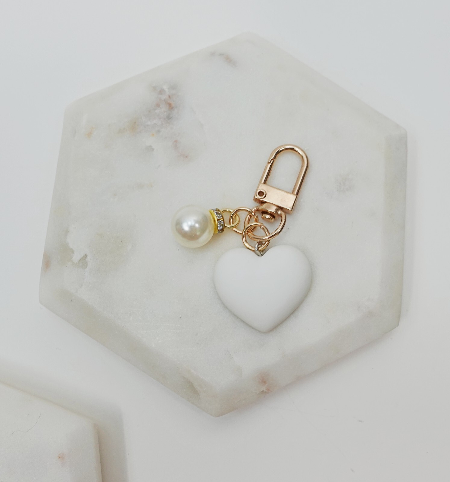 White Heart Keychain Pearl Keyrings Bag Tags Hang Backpack Clips Fashion Cute