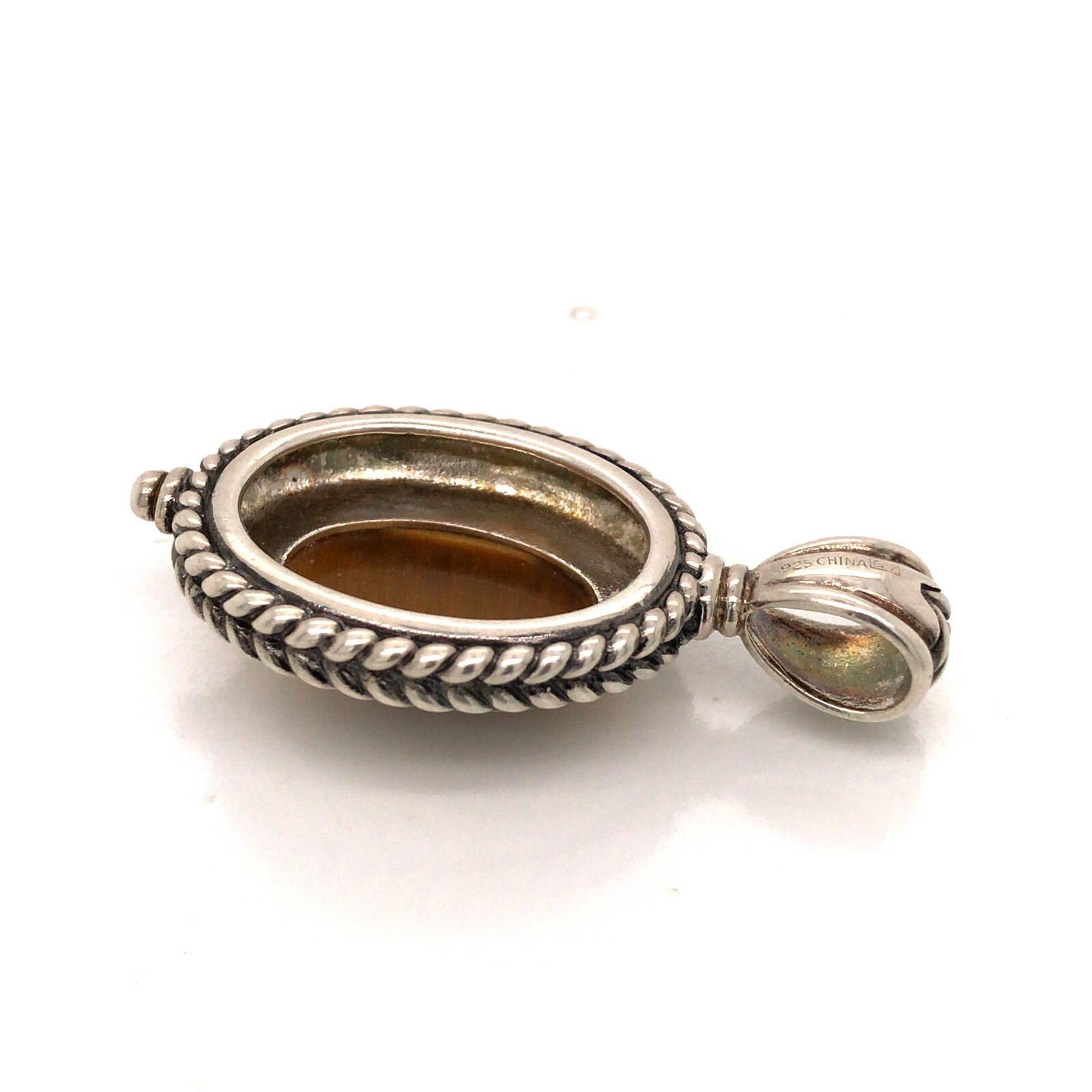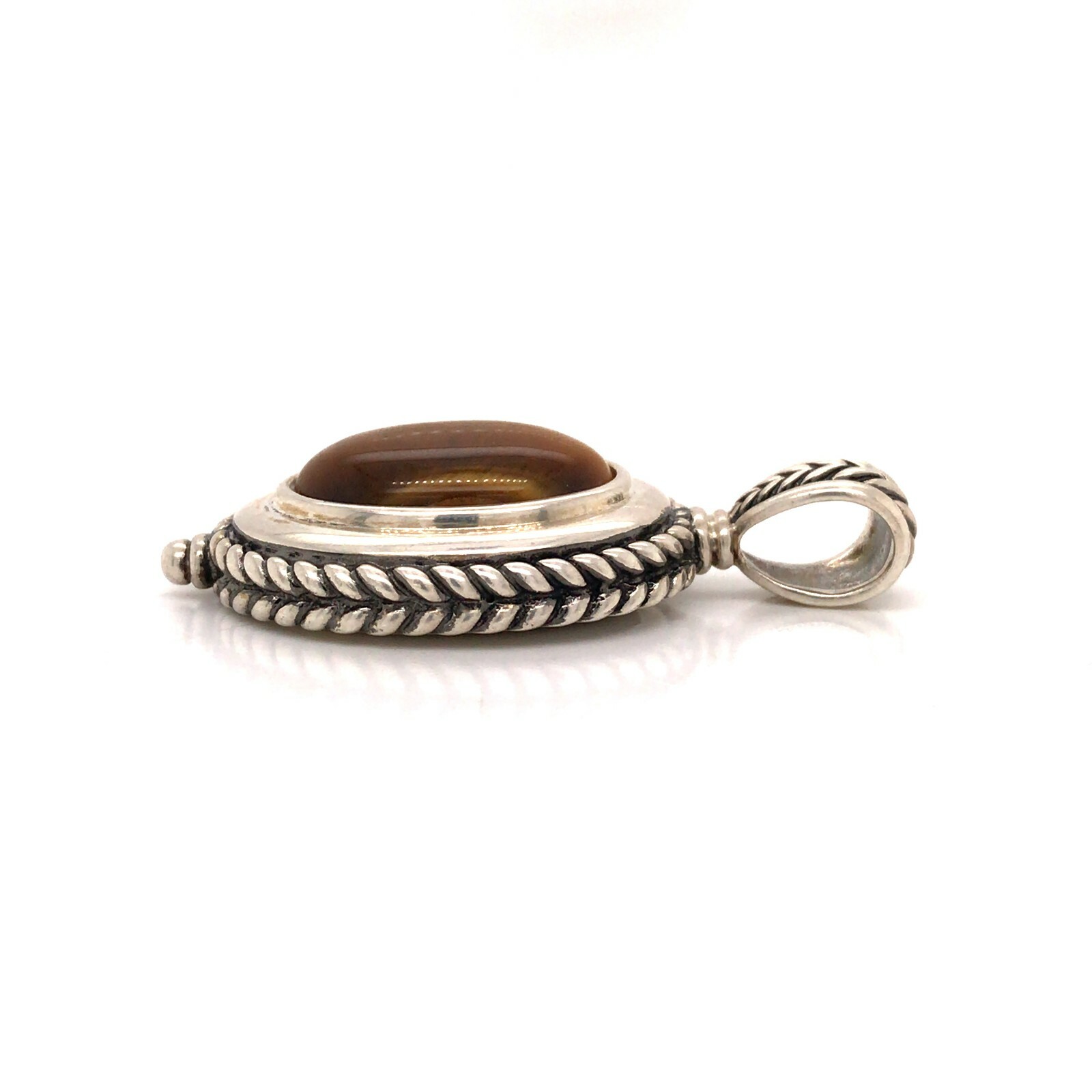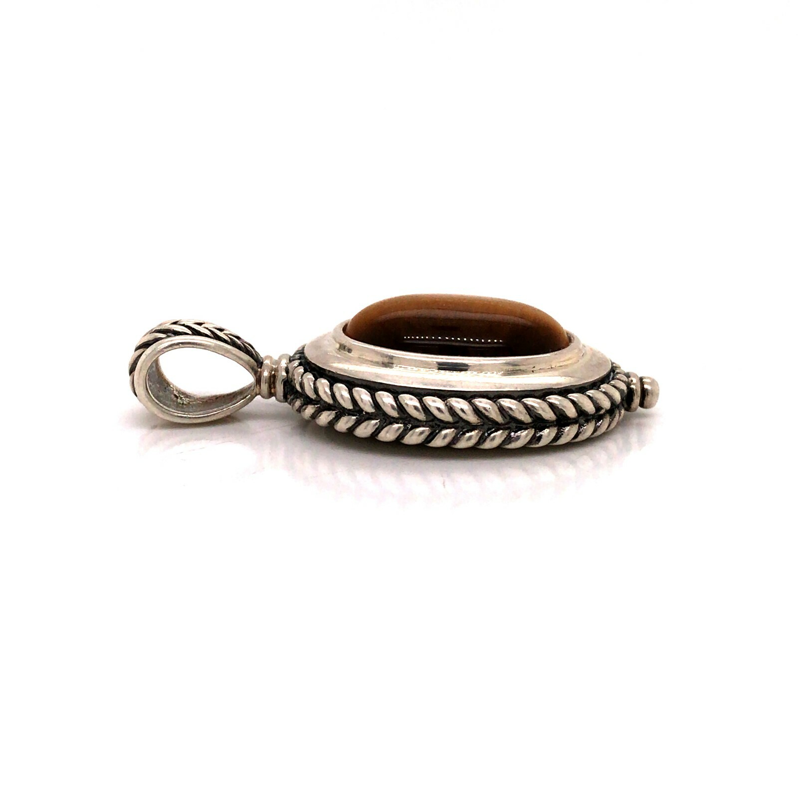 Estate Sterling Silver Tiger Eye Large Pendant 27