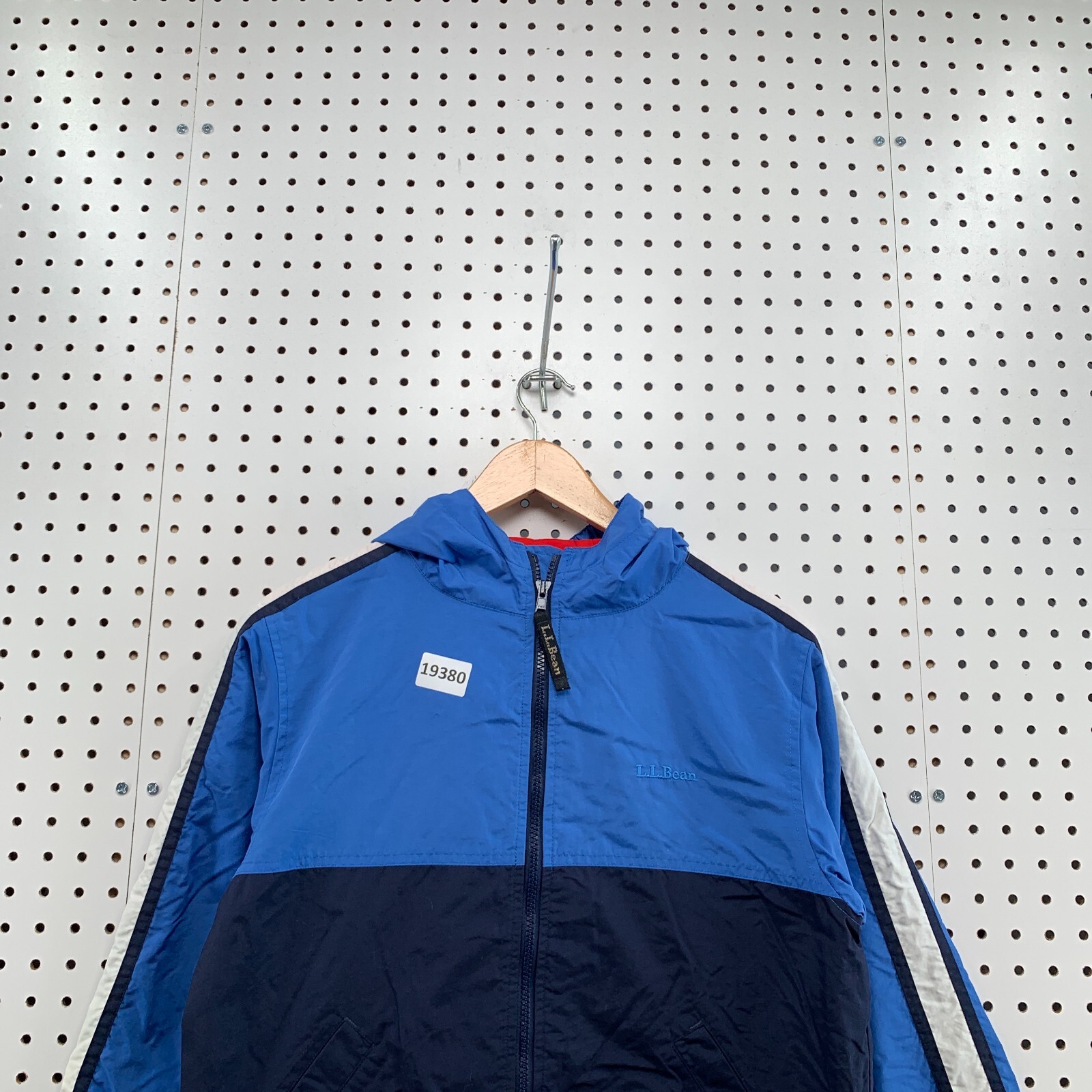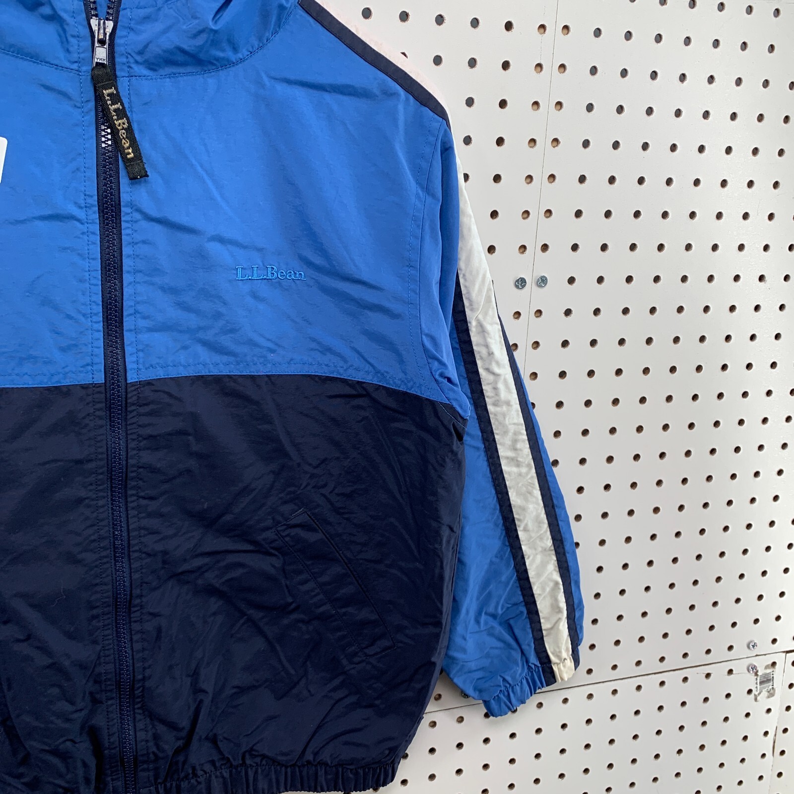 LL Bean Full Zip Hooded Jacket Youth Size Medium 10/12 Blue Windbreaker 19.5x23