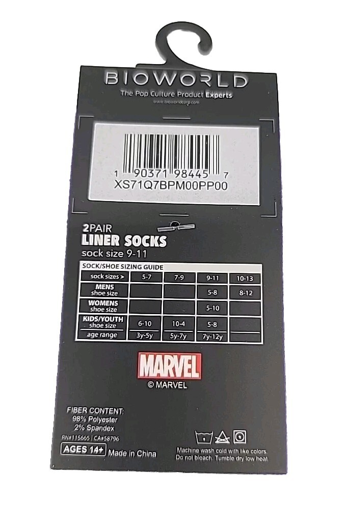 Size 9-11 Black Panther 2 Pack Socks No Show Liner Socks Avengers Marvel Comics