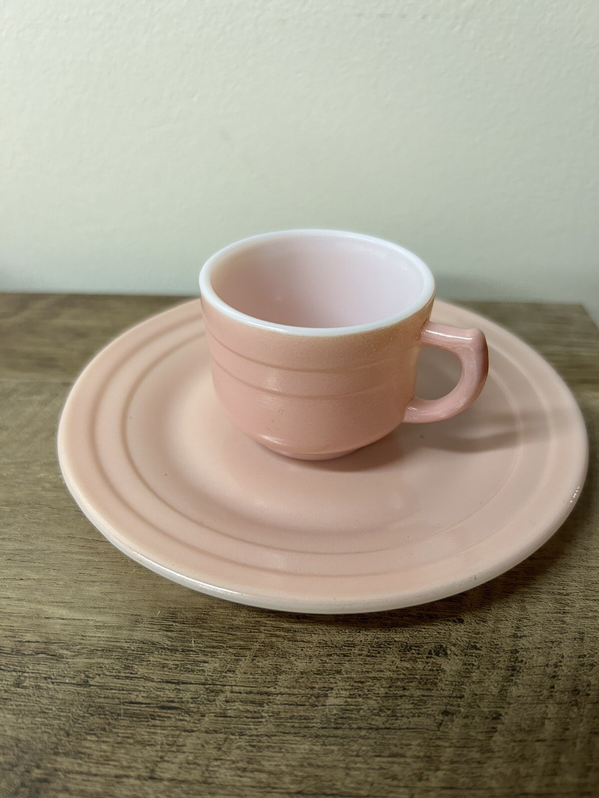 Set of 4 Hazel Atlas Moderntone Pastel Pink Cups and Plates
