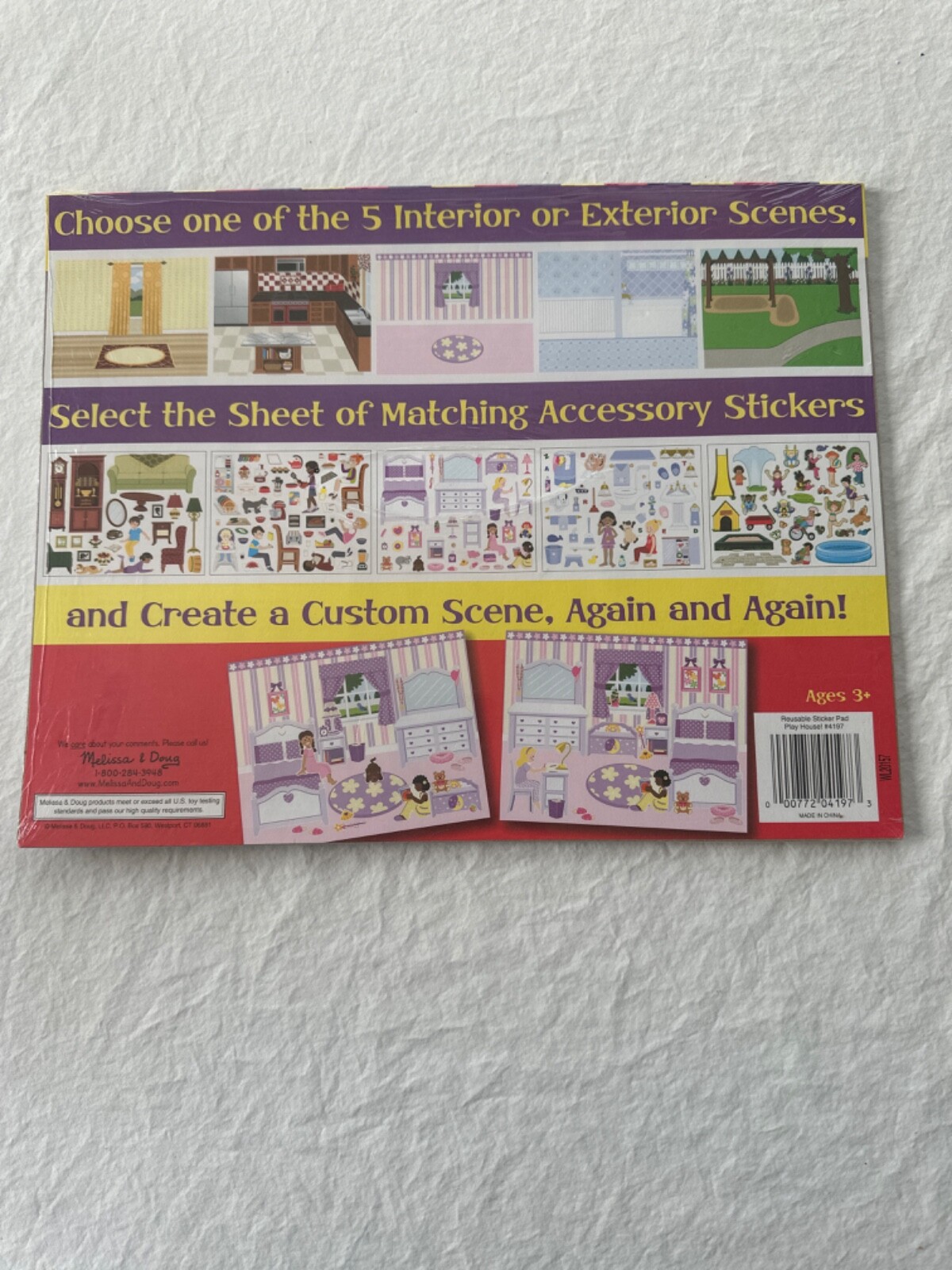 Melissa Doug Reusable Sticker Pad PLAY HOUSE 5 Scenes Over 175 Stickers