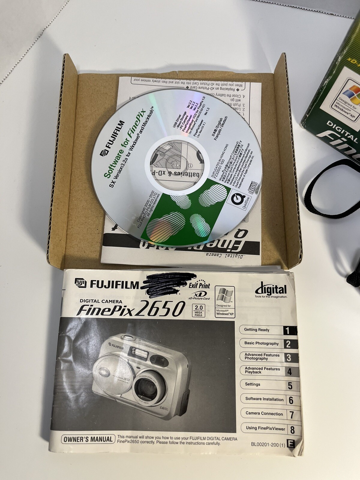 Fuji Finepix 2650 Digital Camera Software CD Instruction Box No Card Or USB Cord
