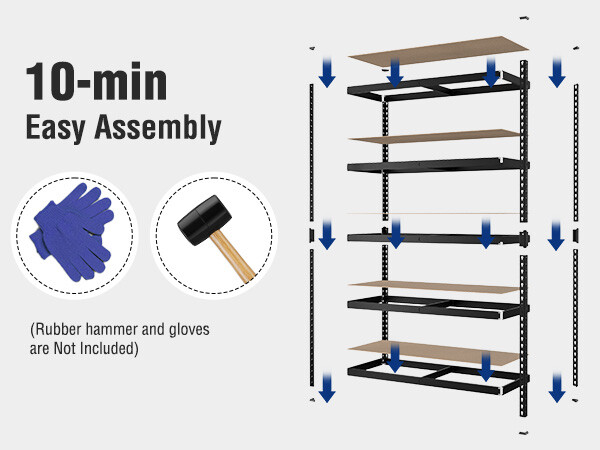 WORKPRO 5-Tier Steel Shelving Unit-Black Adjustable Storage Rack, Heavy Duty