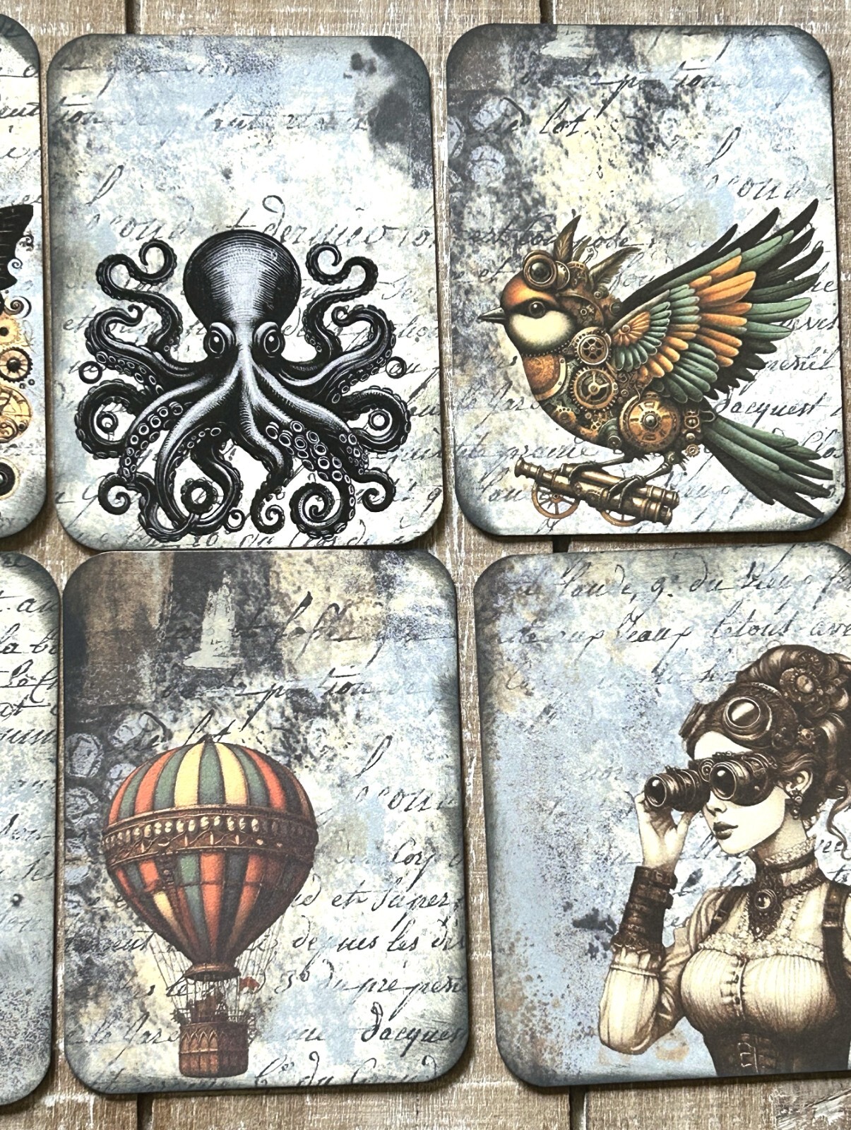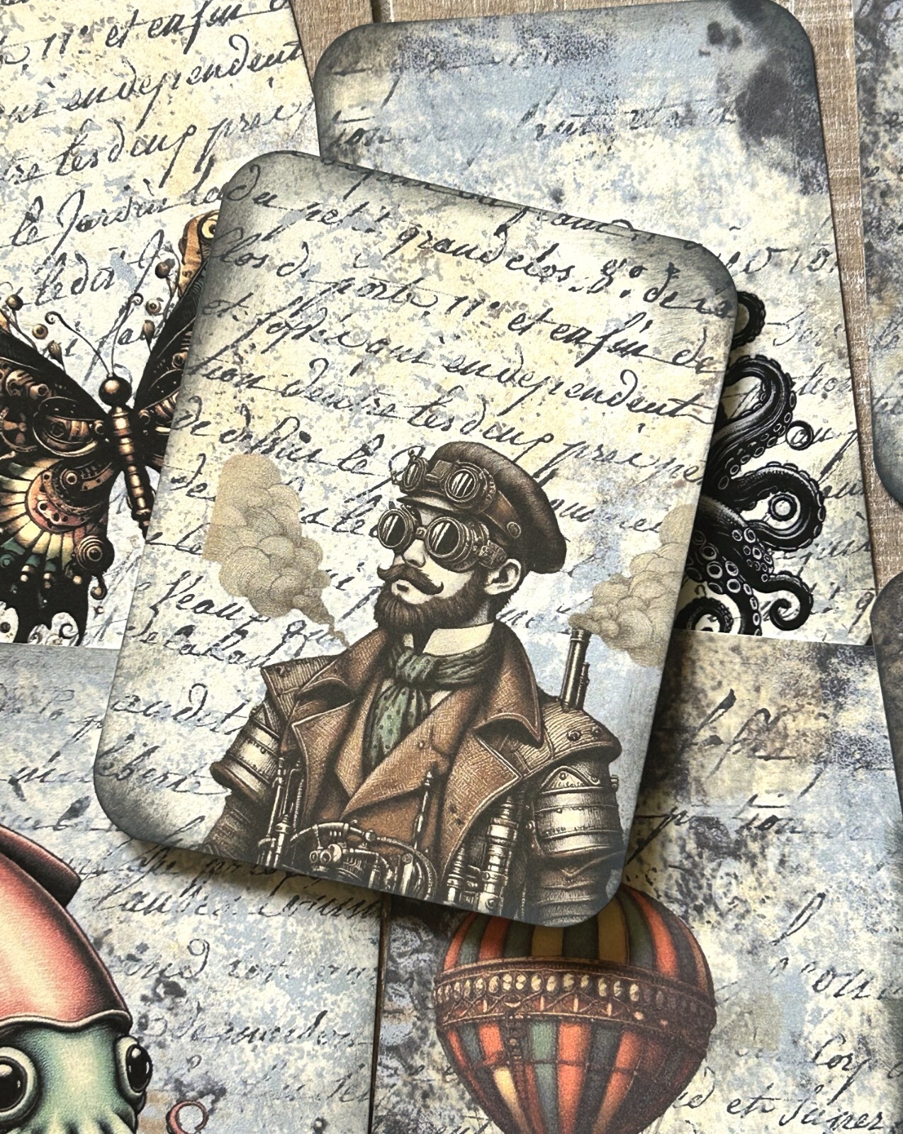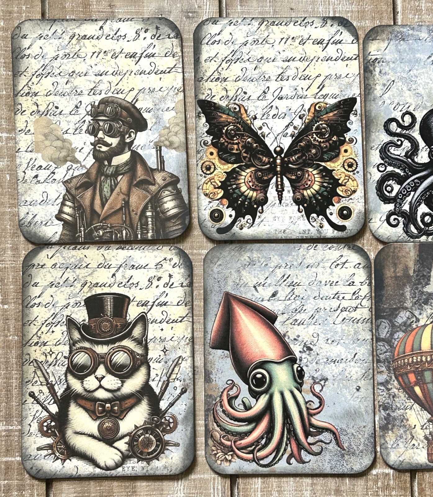steampunk junk journal steampunk cards junk journal card toppers set of 8