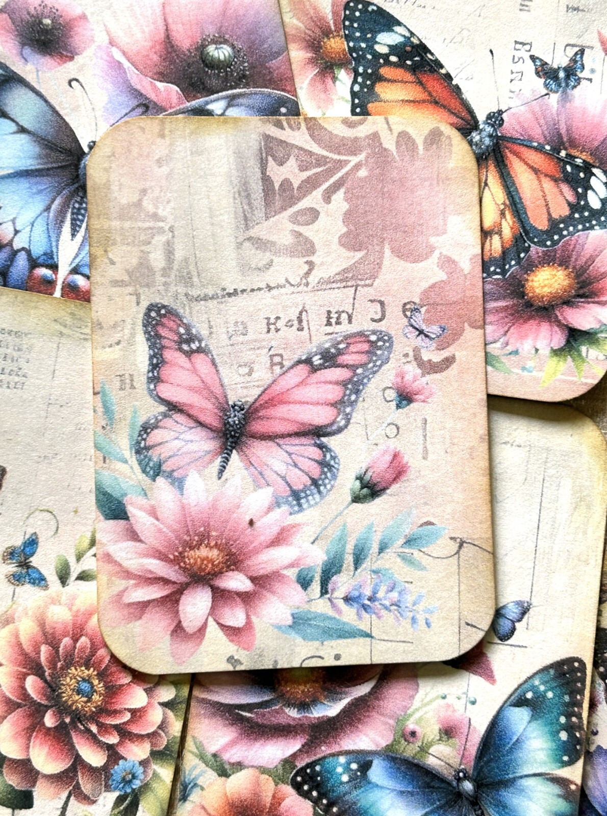 Butterfly vintage style junk journal butterflies flowers card toppers set of 10