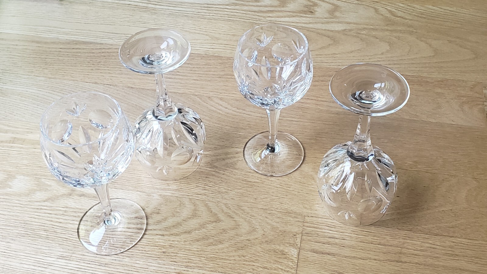 Nachtmann Bamberg 4 Crystal Wine Goblets Glasses Cut Crystal 6.25 T