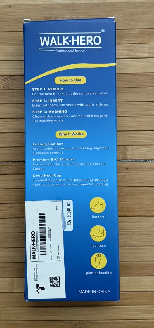 как выглядит NEW Walk-Hero Medical Orthotic Insoles Comfort Support Men 5-5.5 фото