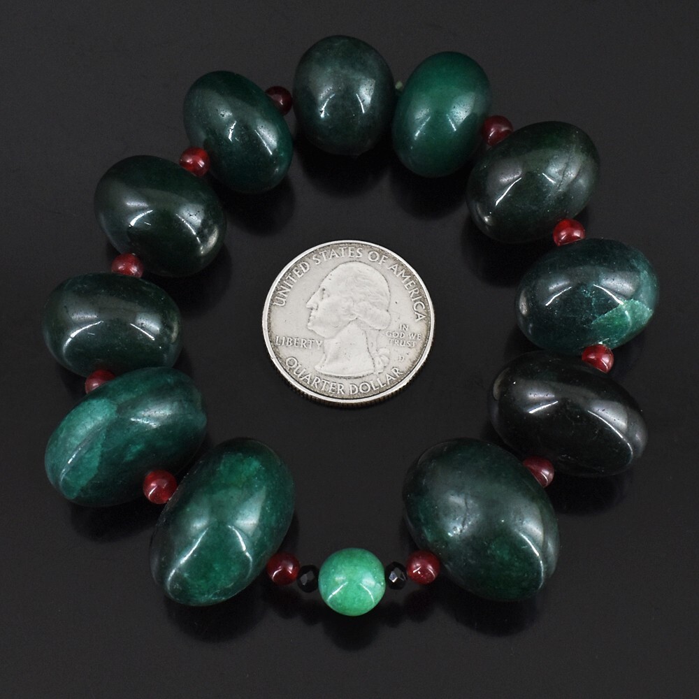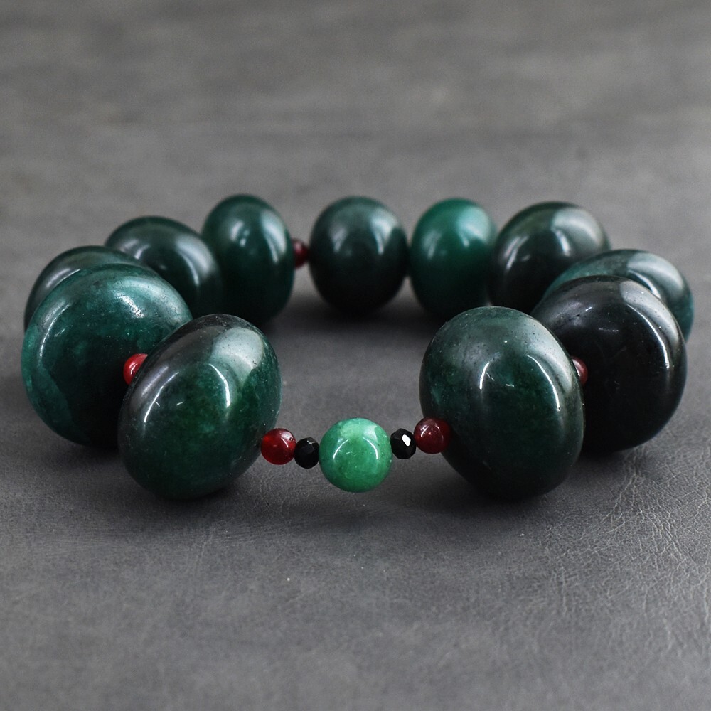 как выглядит Green Emerald, Ruby Onyx 491.00 Cts Beaded Stretchable Bracelet VK 76 E579 фото