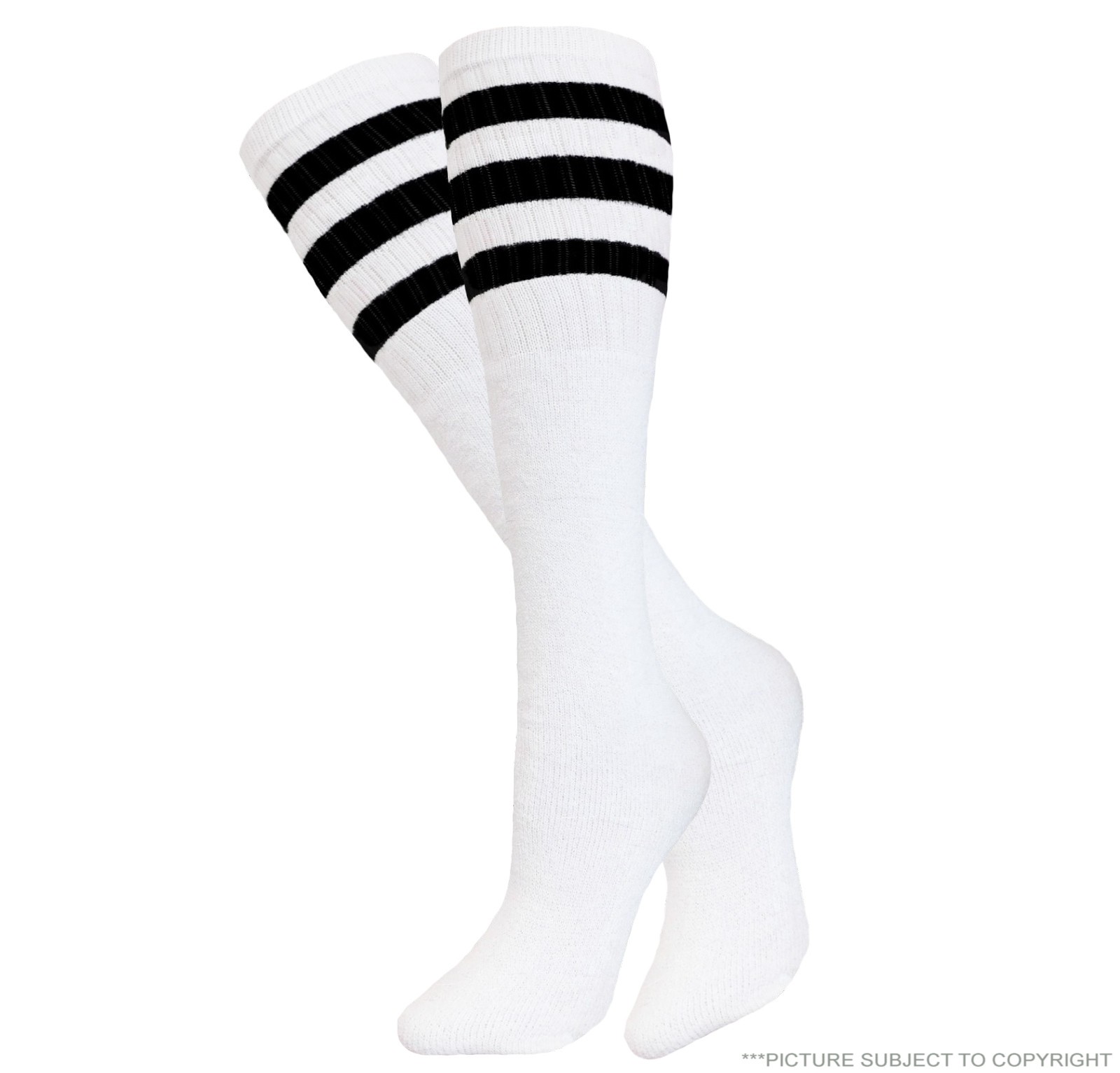 5pk White Striped Tube Socks 22 Inch Over the Calf COTTON Multicolor Socks