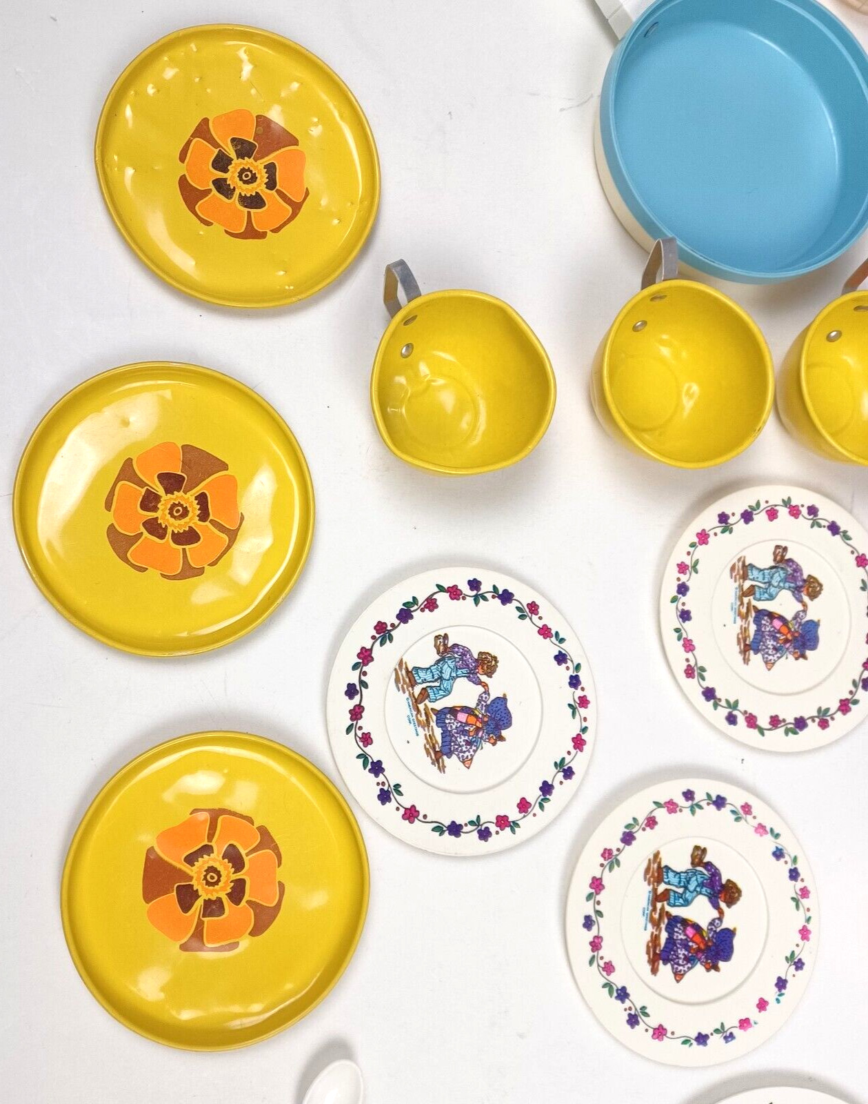 как выглядит Vtg Lot of 53 Childs Dishes Tea Set Pots Pans Pitchers Utensils Plastic Metal фото
