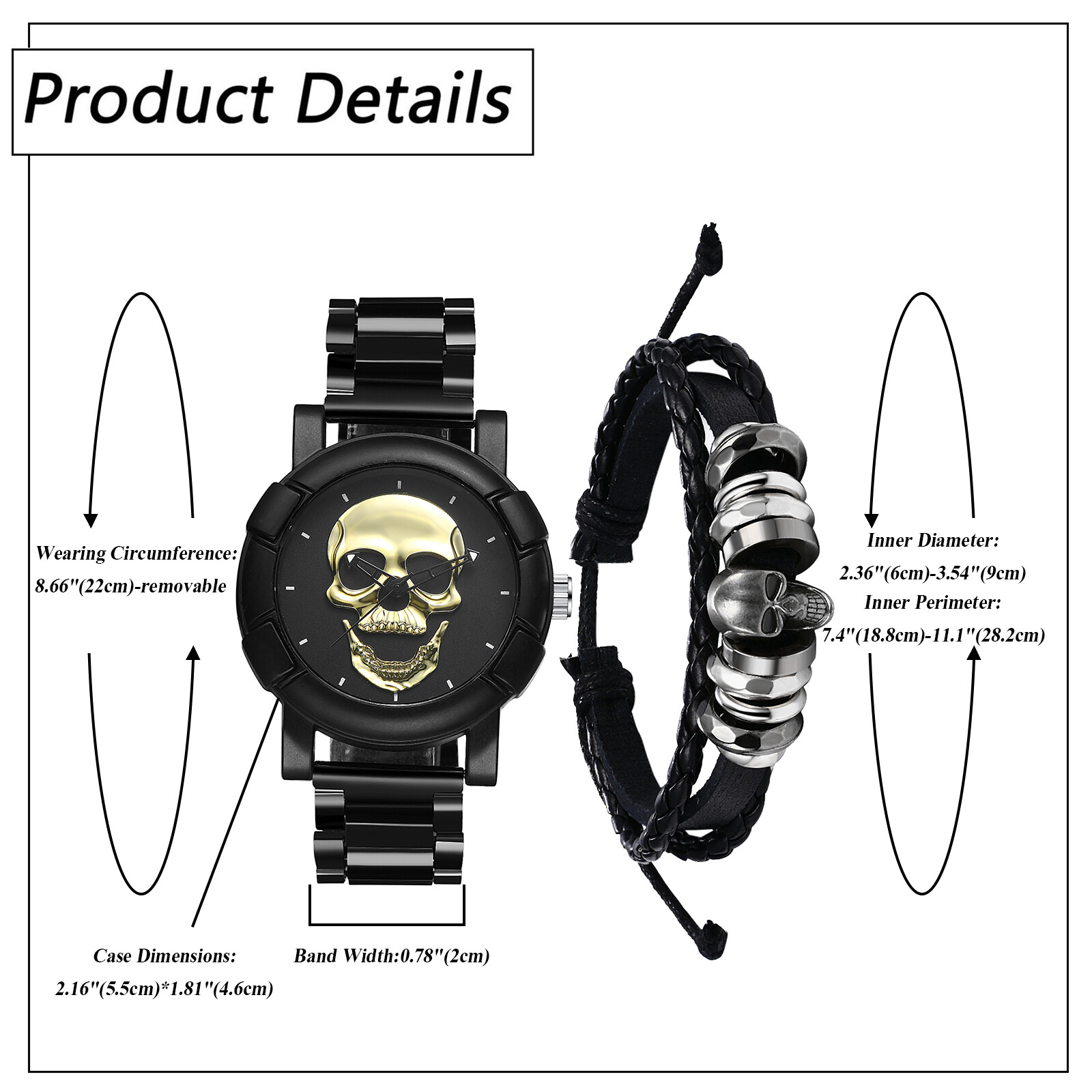 Punk Skull Men Watch Waterproof Sports Gothic Analog Quartz Wristwatch Bracelet
