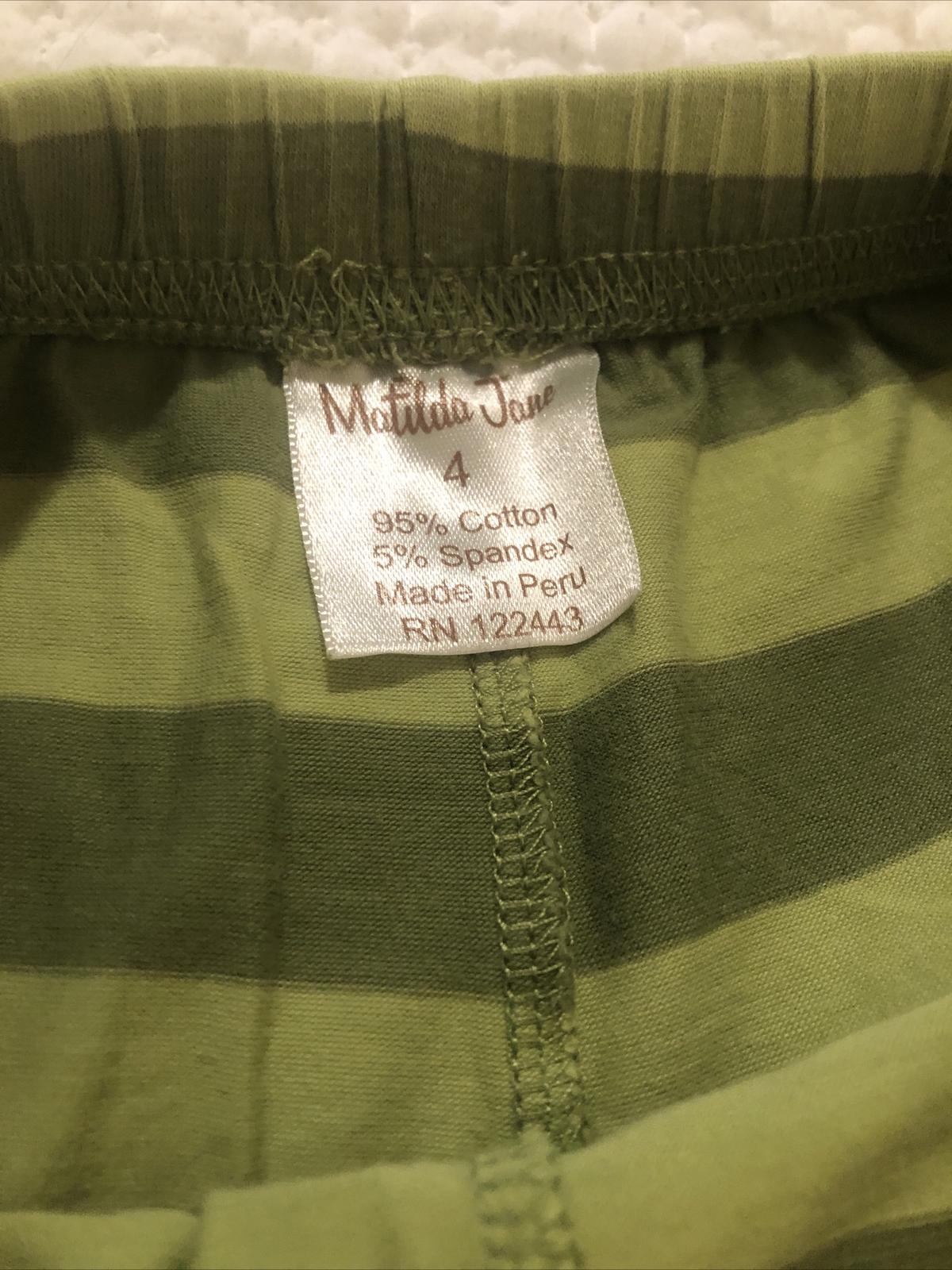 Matilda Jane You Me Greenery Striped Knit Big Ruffles Pants HTF Size 4
