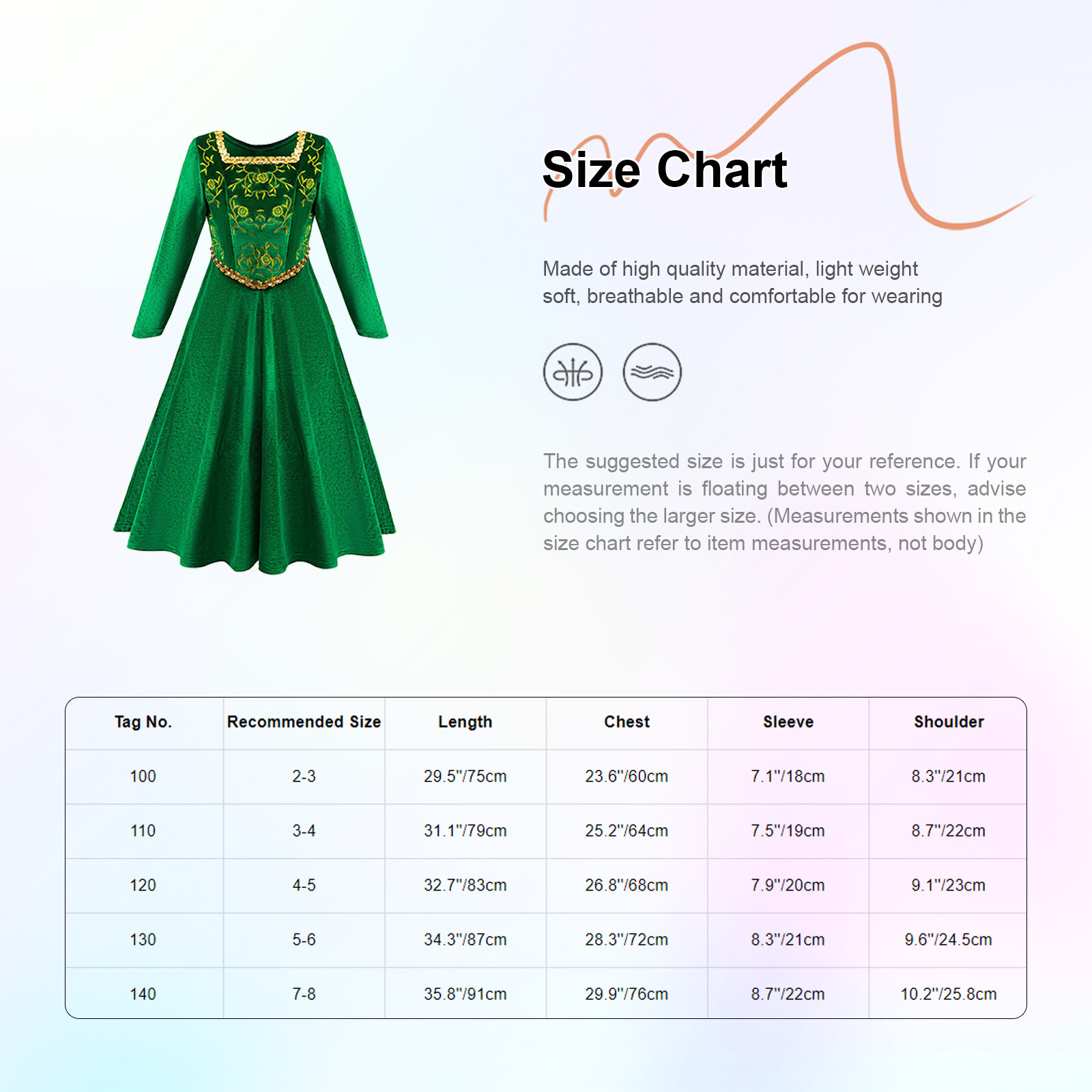 как выглядит Kids Girls Long Skirt Cartoon Gown Prom Dress Long Sleeve Costume Green Stage фото