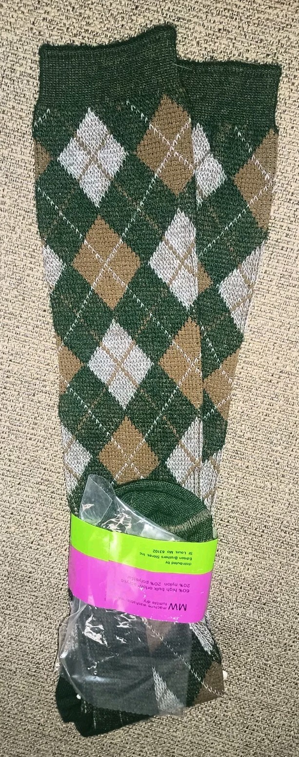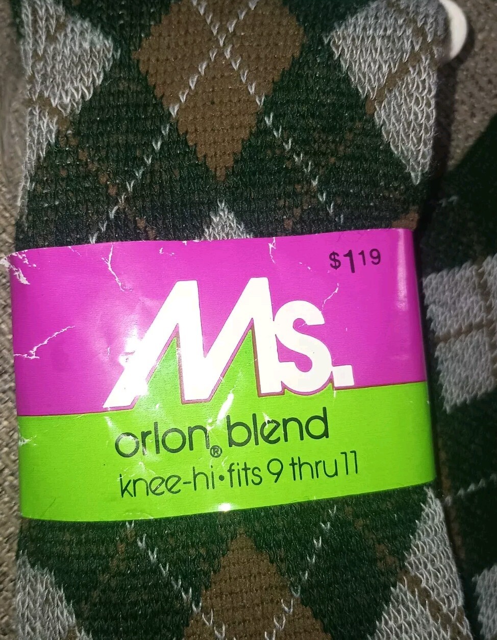 New/Vintage Ms. Orlon Blend Womens Argyle Knee Hi Socks, 9-11