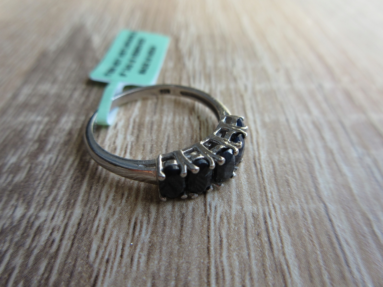 как выглядит Black Sapphire 5 Stone Ring Platinum Overlay Sterling Silver Size 6, 7 Option фото