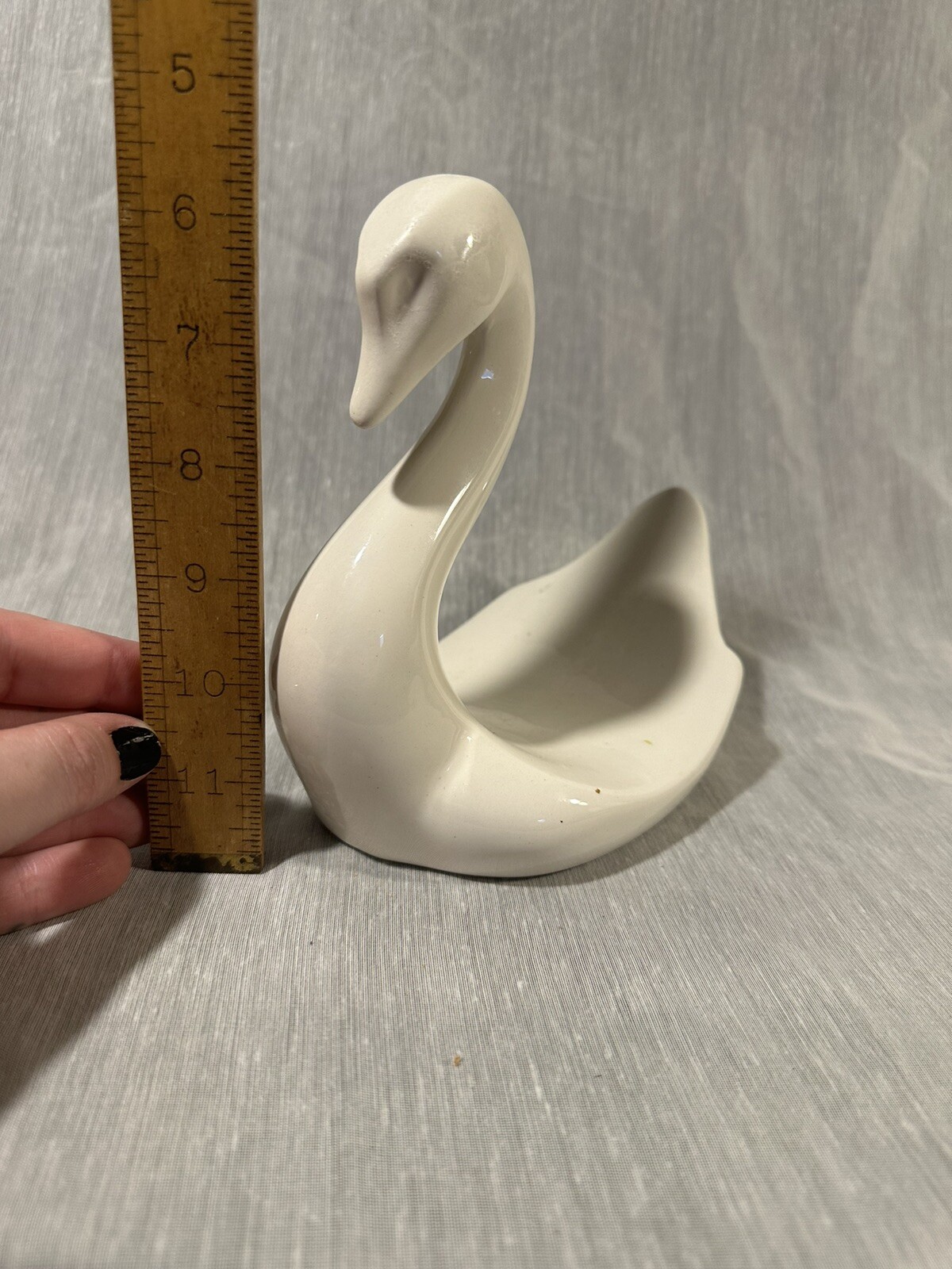 Vintage 1980s White Ceramic Swan Towel Holder Bathroom Decor Signed Handmade