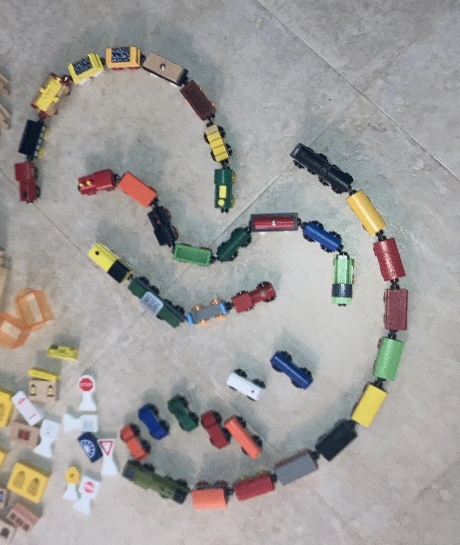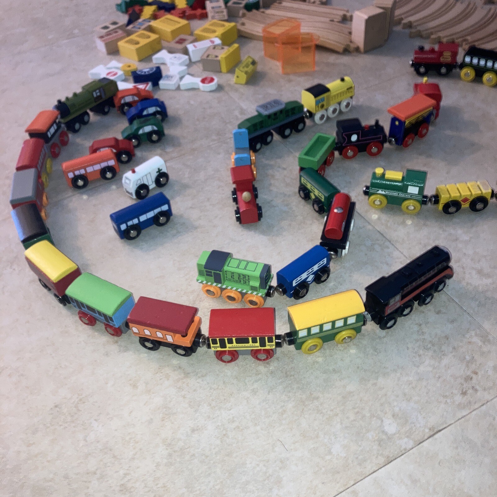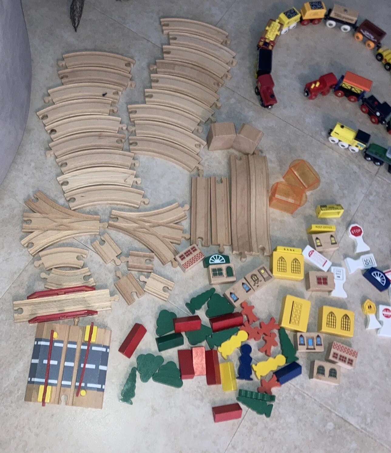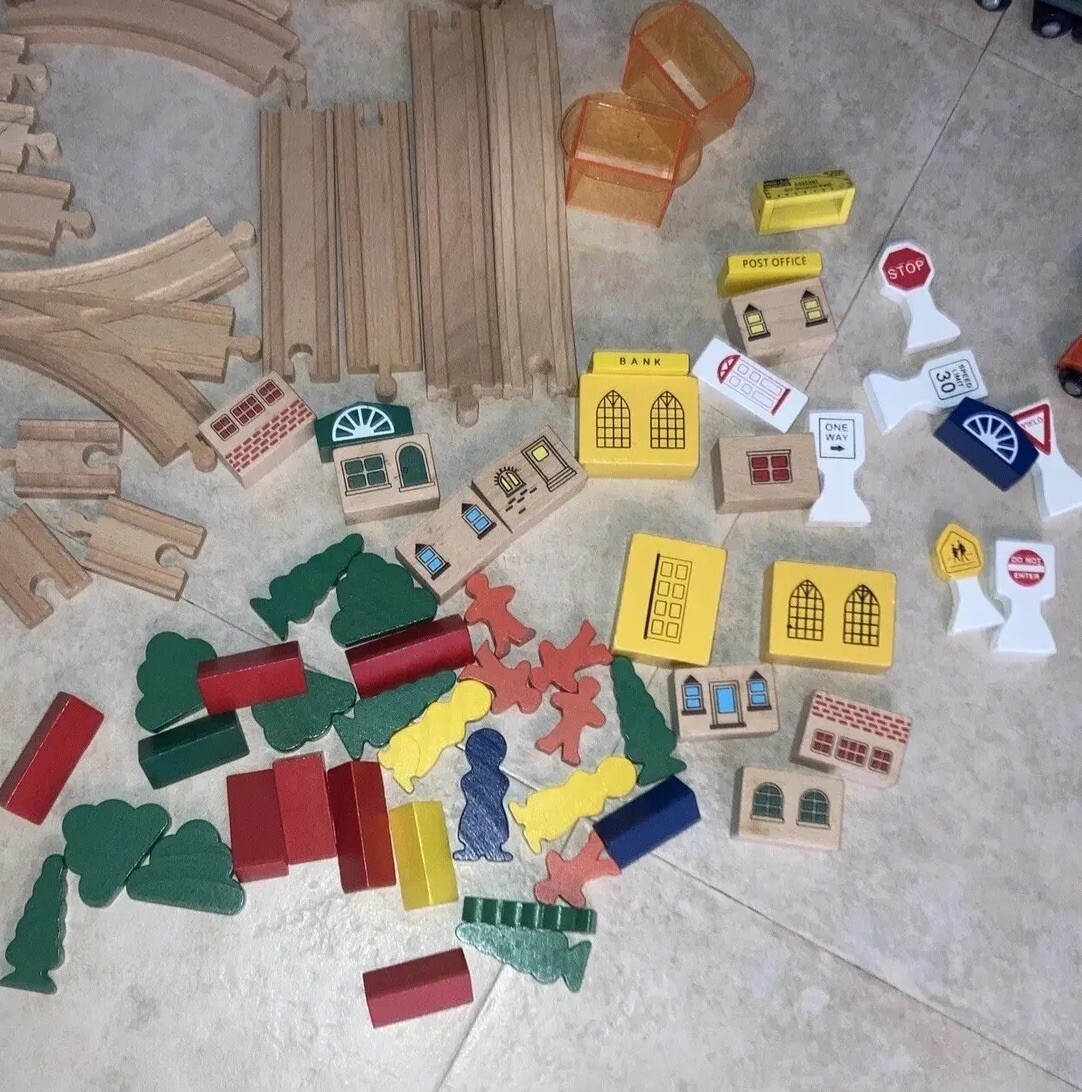 Chuggington TOMY LOT Wooden Trains Set Magnetic Bridge Shops Trees 100 Piece