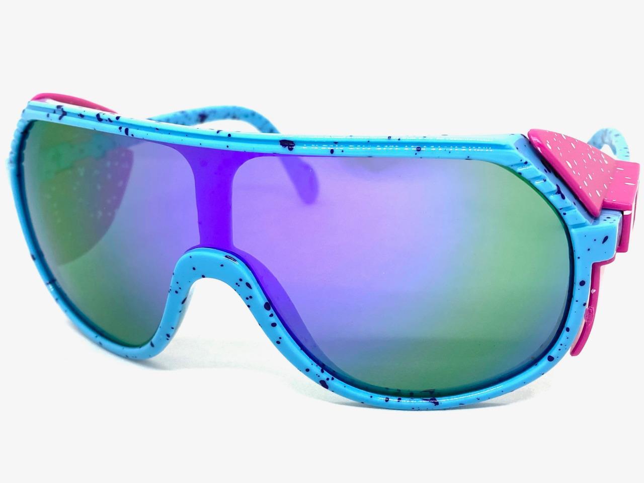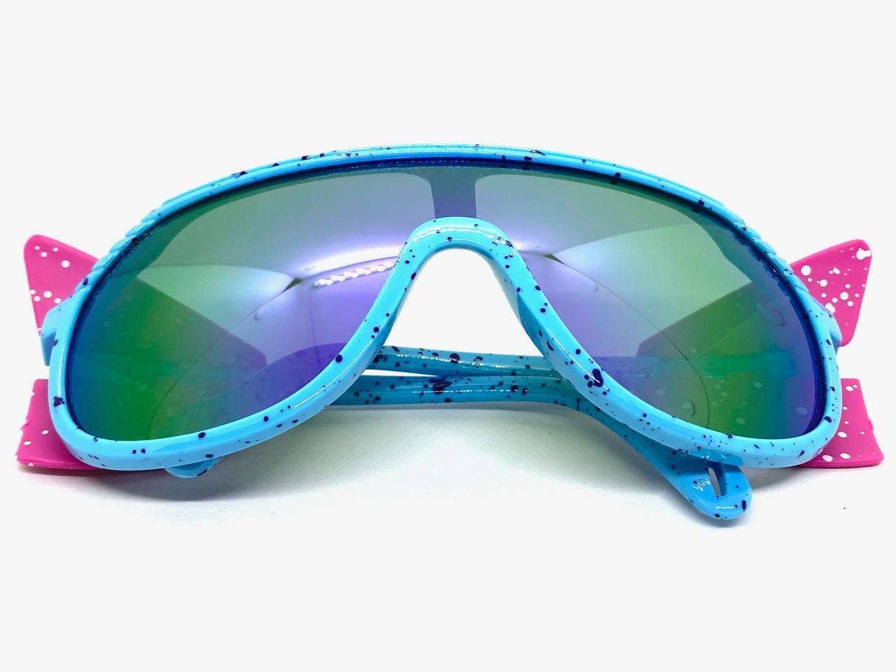 как выглядит OVERSIZED Retro Sporty Wrap Around Shield SUN GLASSES Large Big Baby Blue Frame фото