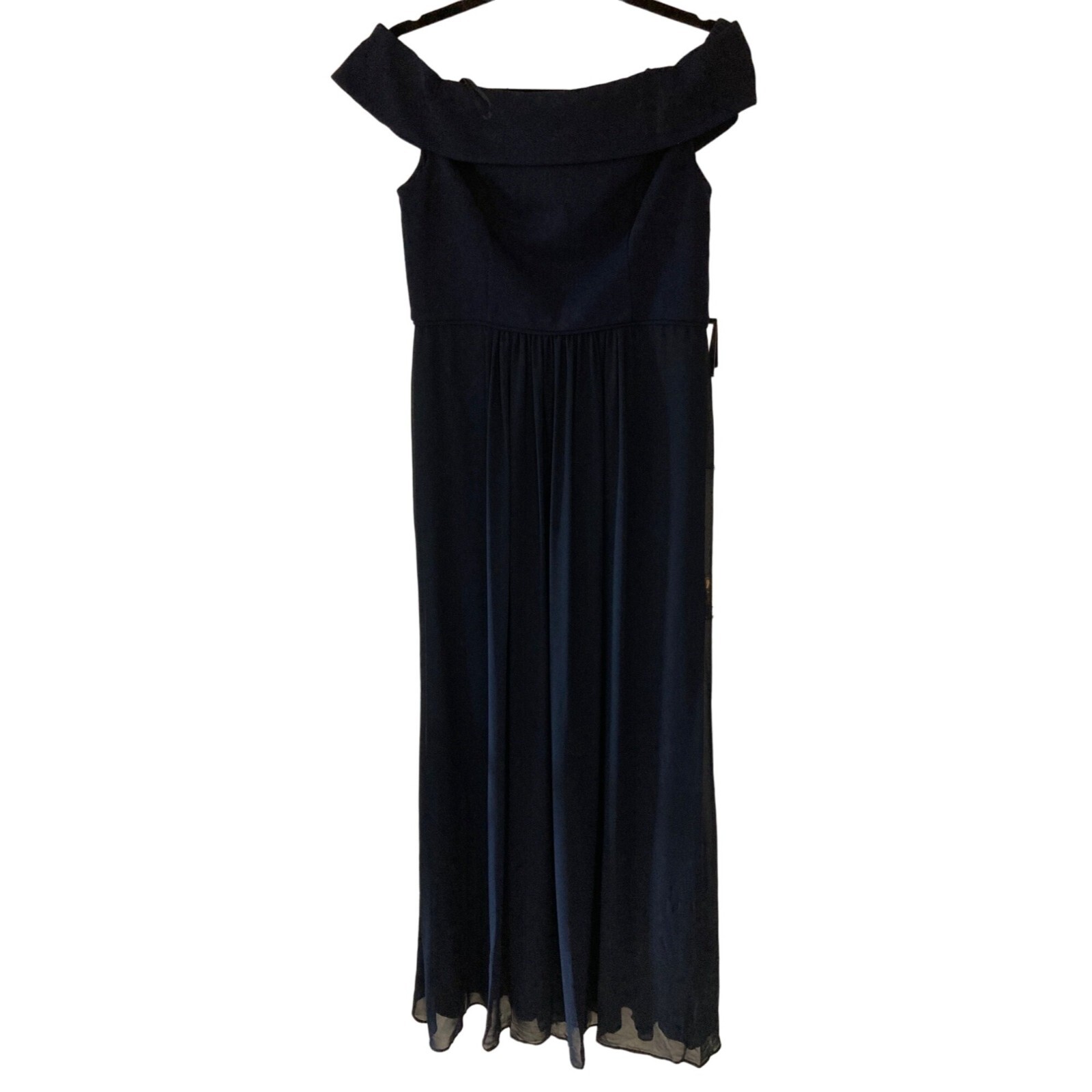 NWT Adrianna Papell Off-The-Shoulder Chiffon Gown Midnight Size 10