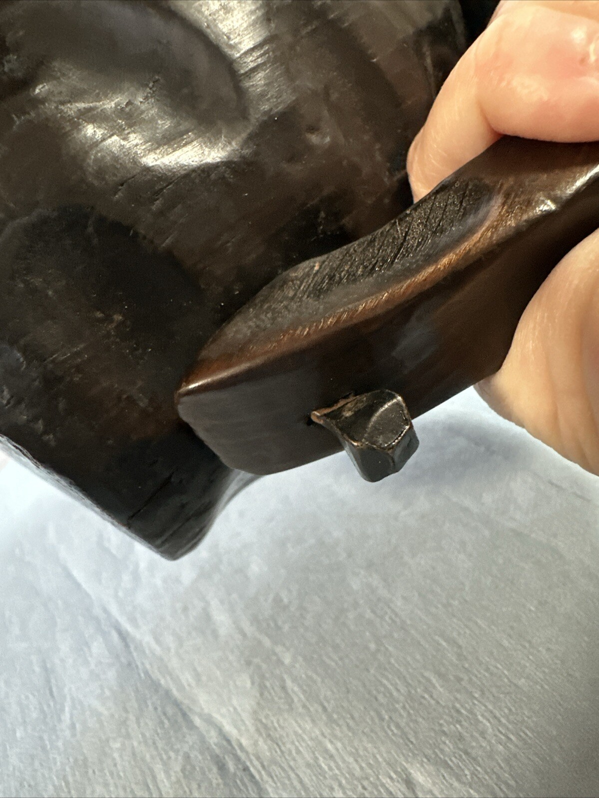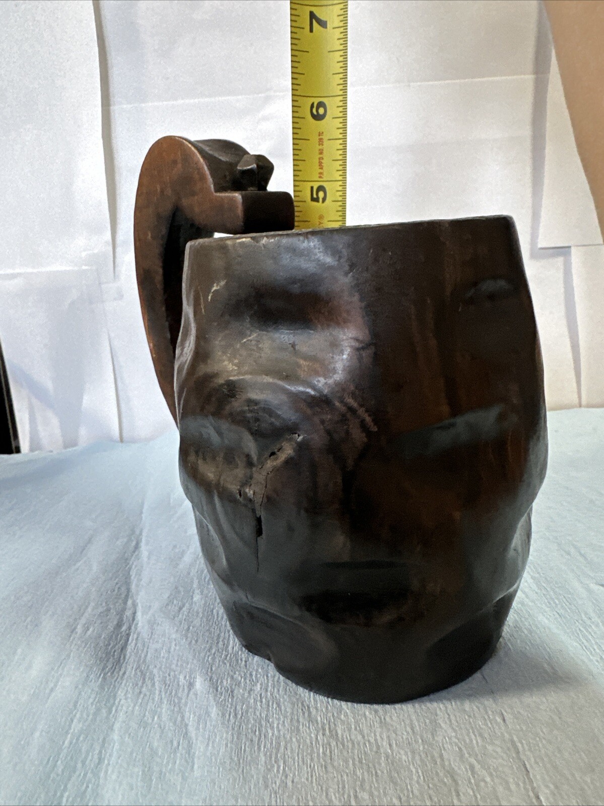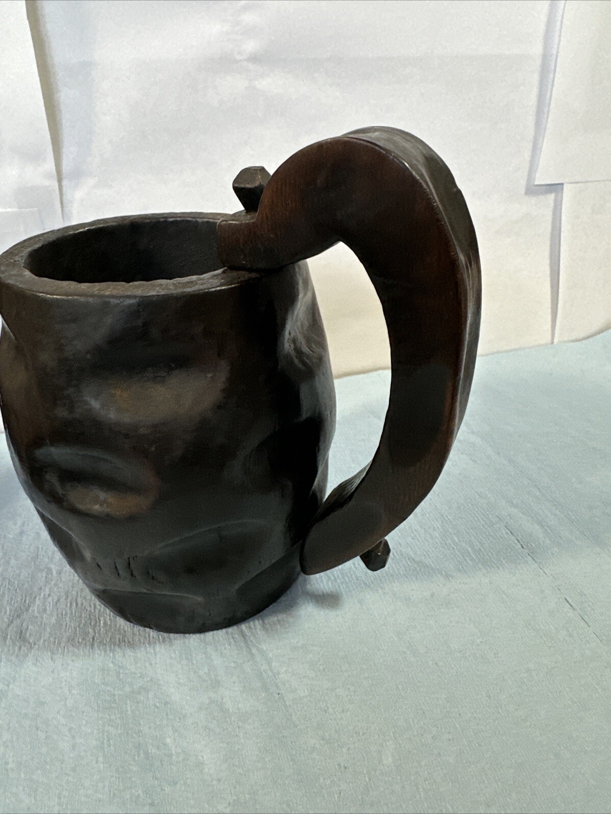 • Vintage Folk Art Hand Carved Wood Beer Mug Tankard