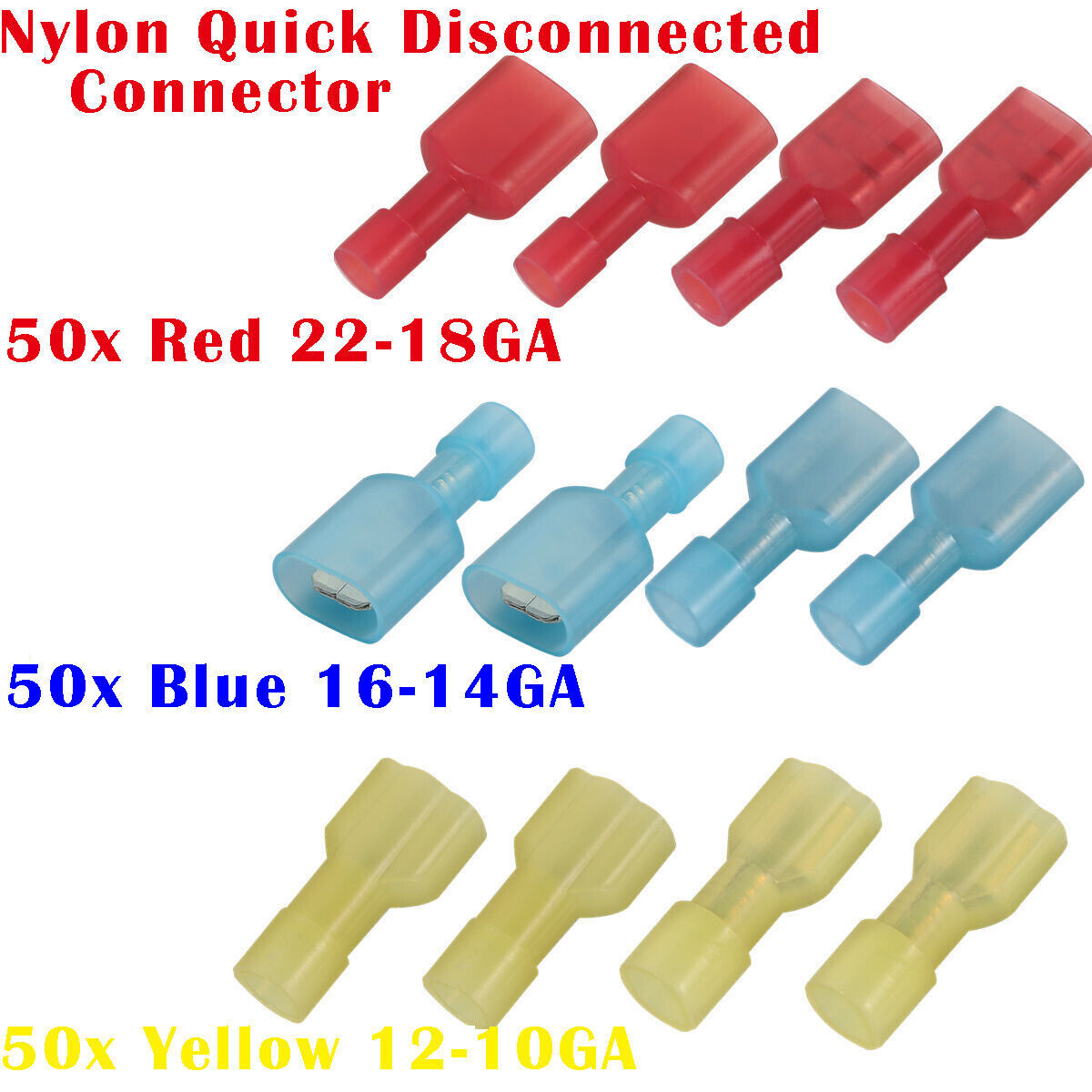To Fit:: suitable for A.W.G. 22-16(Red) ,16-14(Blue) ,12-10(Yellow)