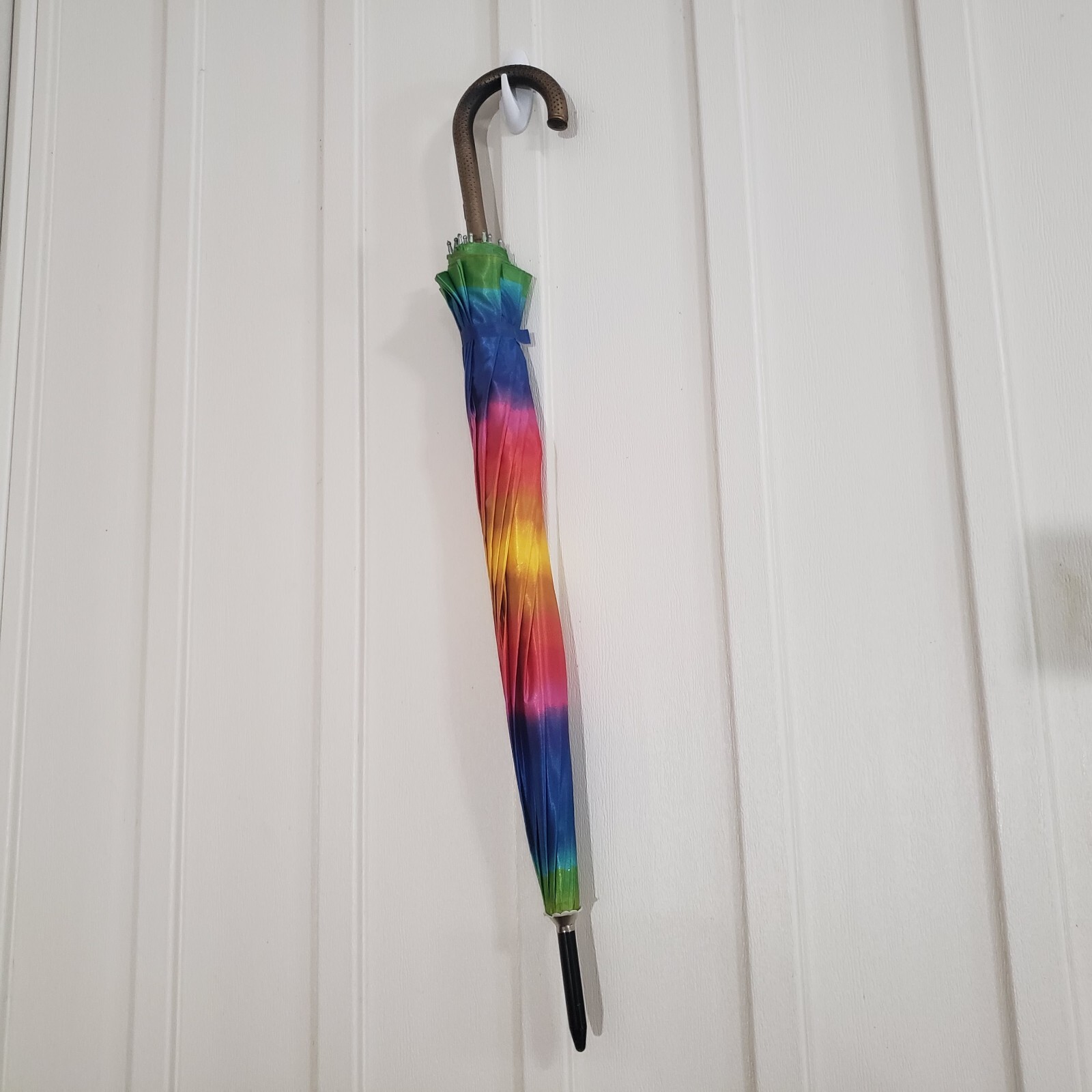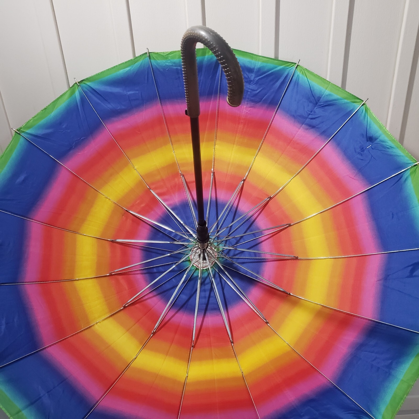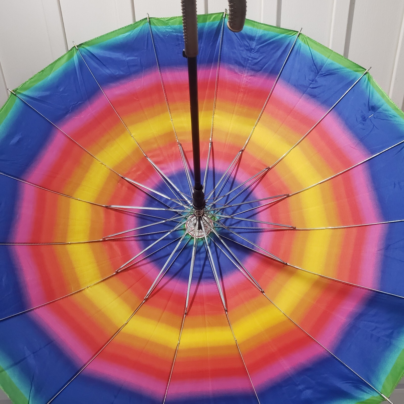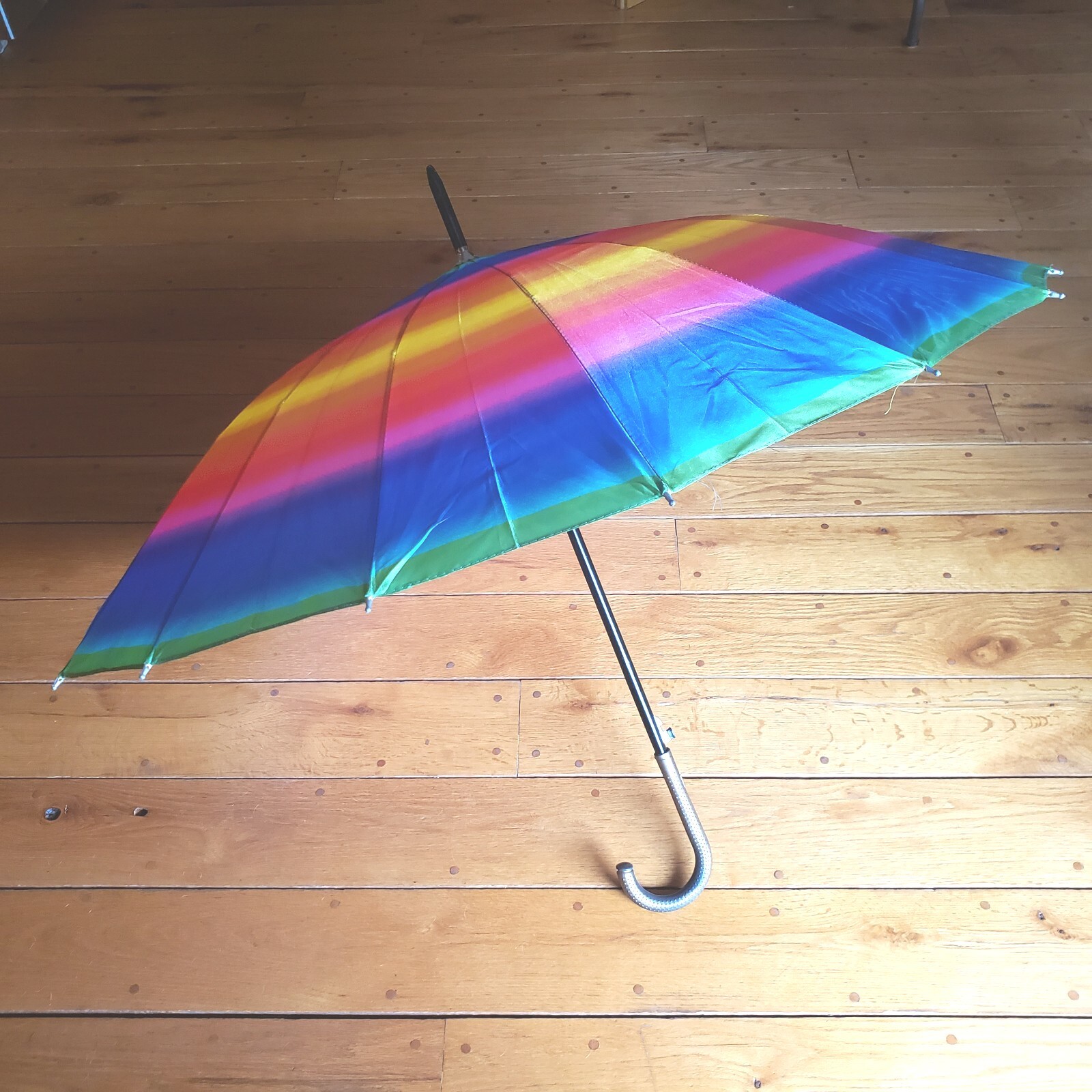 как выглядит Classic Long Auto Open Umbrella with Colors Of The Rainbow 38" Easy Hold Handle фото
